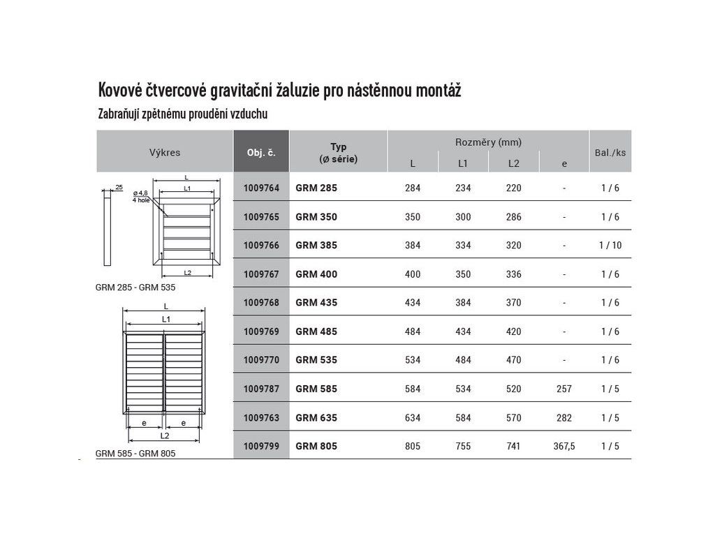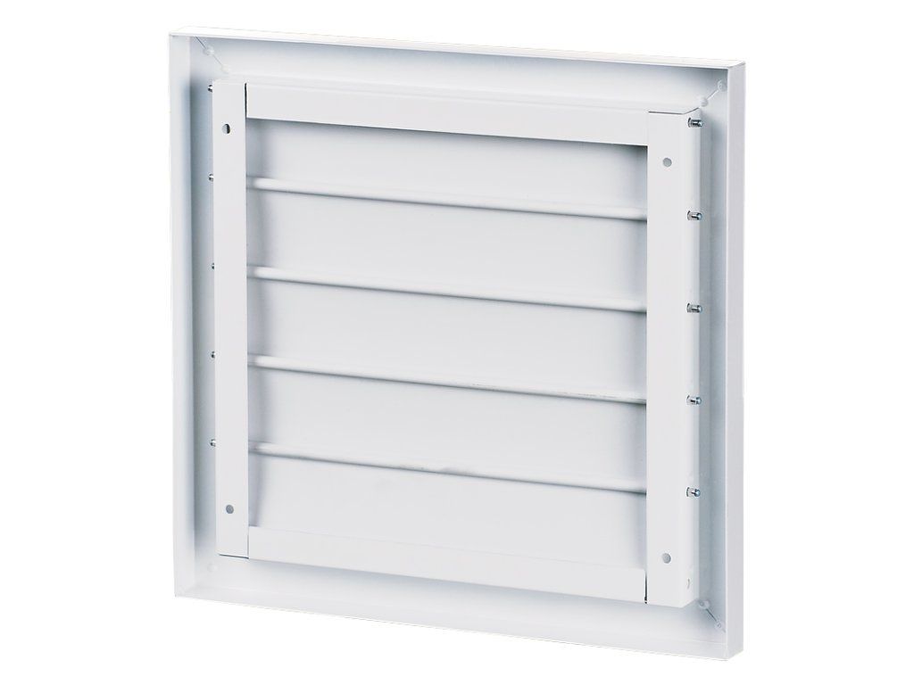 VENTS GRM 535 - kovová gravitační žaluzie 535x535. Kovová gravitační žaluzie bez nástavce (pro nástěnnou montáž). Kovová gravitační žaluzie bez kruhového nástavce - kovový rám, plastové lamely v bílé barvě.Dodatočné parametre