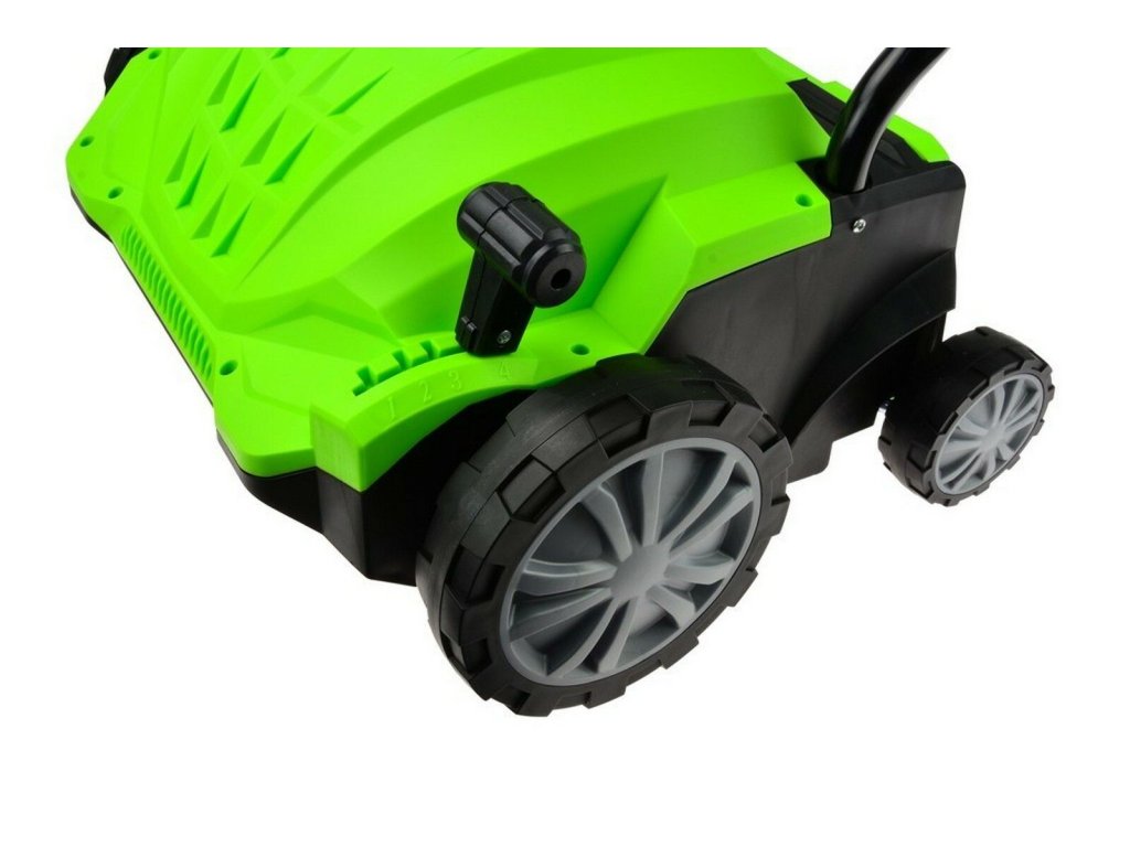 - plnohodnotná 4 kola pro snadný pojezd i po nerovném trávníku a perfektní vyvážení stroje