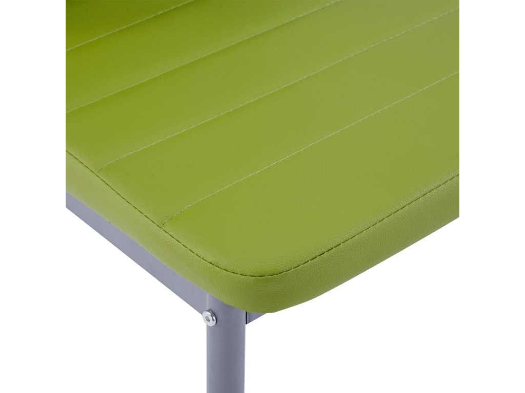 Doska stola je vyrobená z veľmi odolného tvrdeného skla, ktoré sa ľahko čistí. Každá stolička má kvalitný poťah z umelej kože. Jemné čalúnené sedadlá sú veľmi pohodlné.