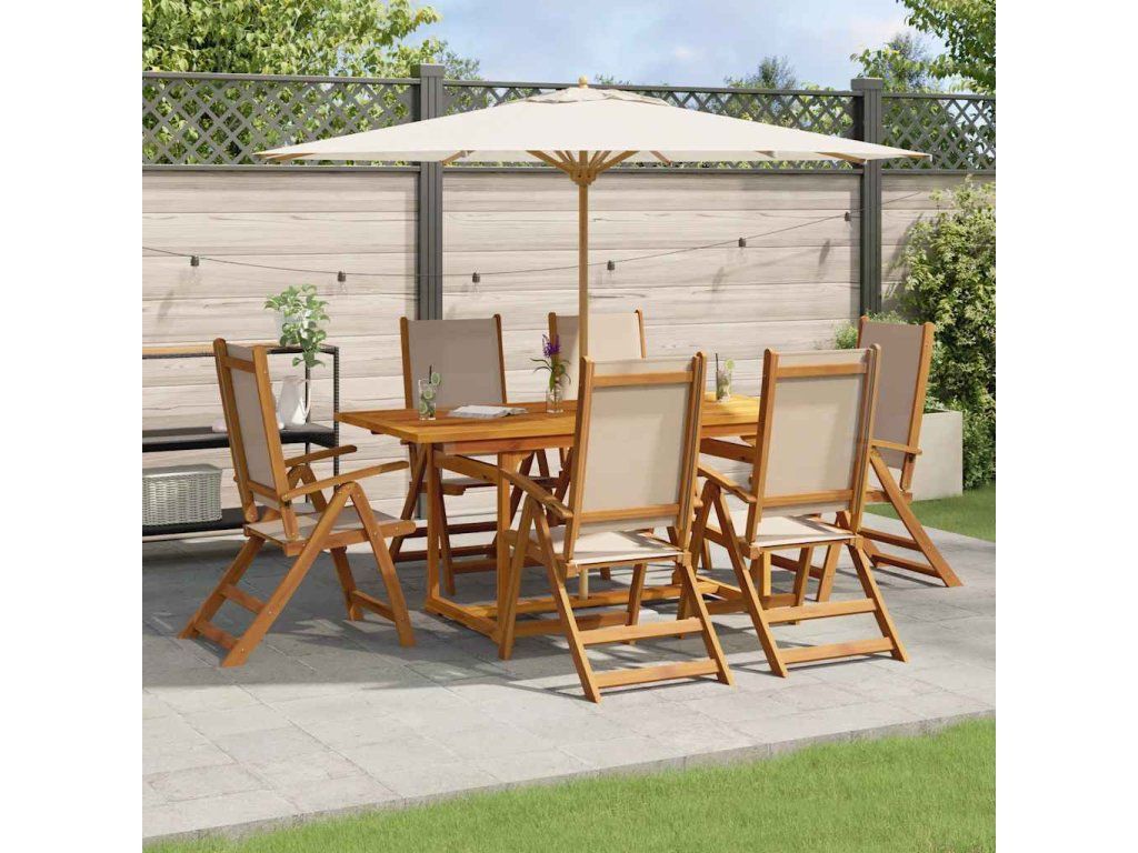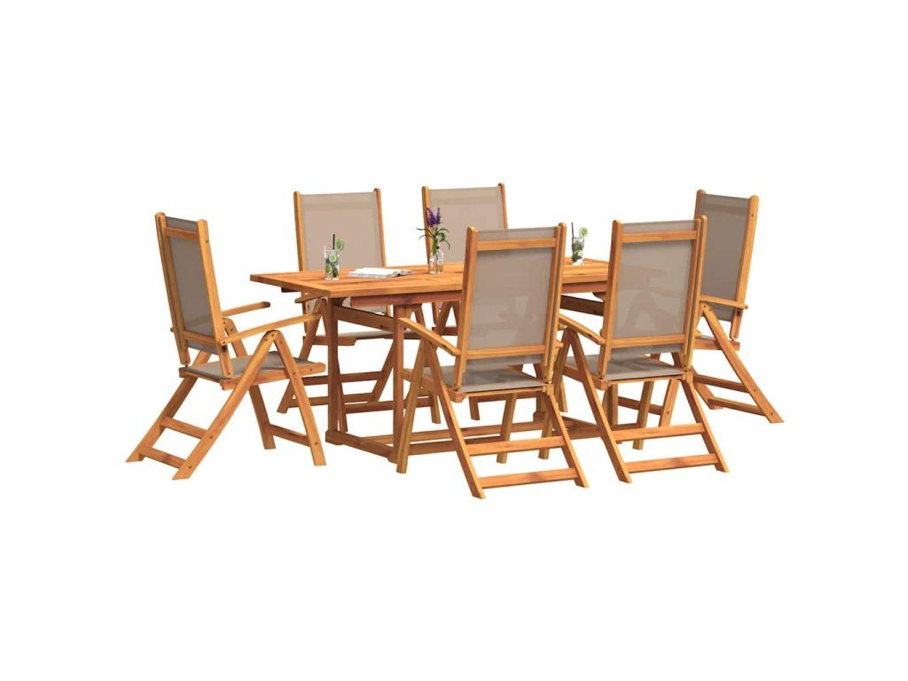 vidalXL 7-dielna záhradná jedálenská súprava akáciový masív a textilén
