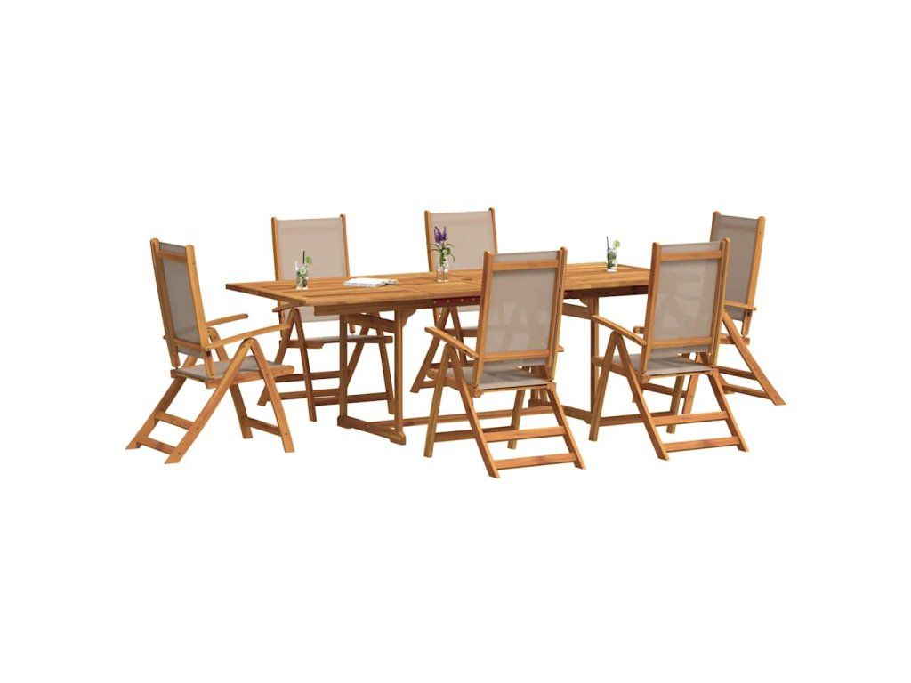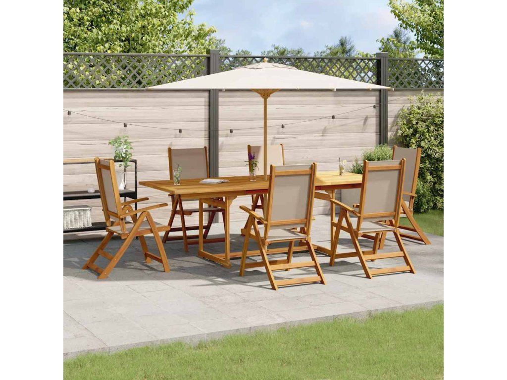 vidalXL 7-dielna záhradná jedálenská súprava akáciový masív a textilén