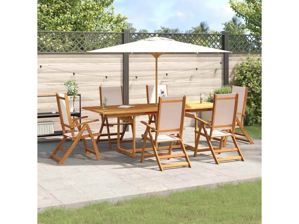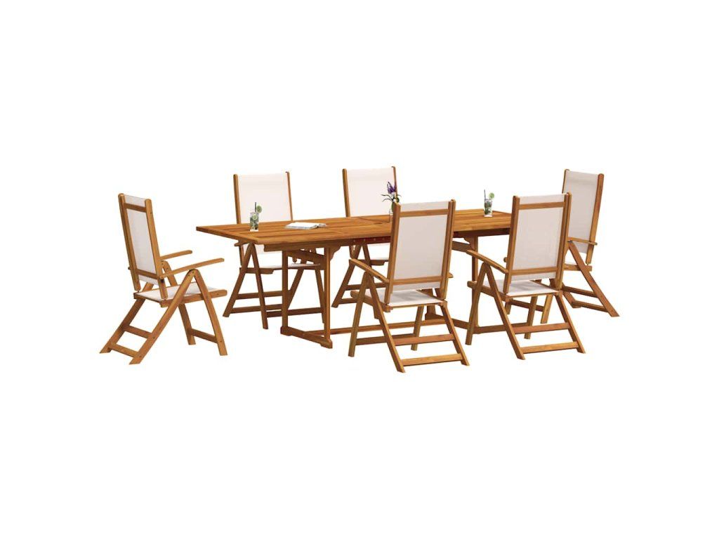 vidalXL 7-dielna záhradná jedálenská súprava akáciový masív a textilén