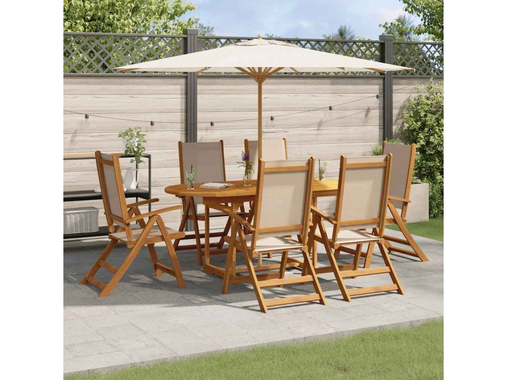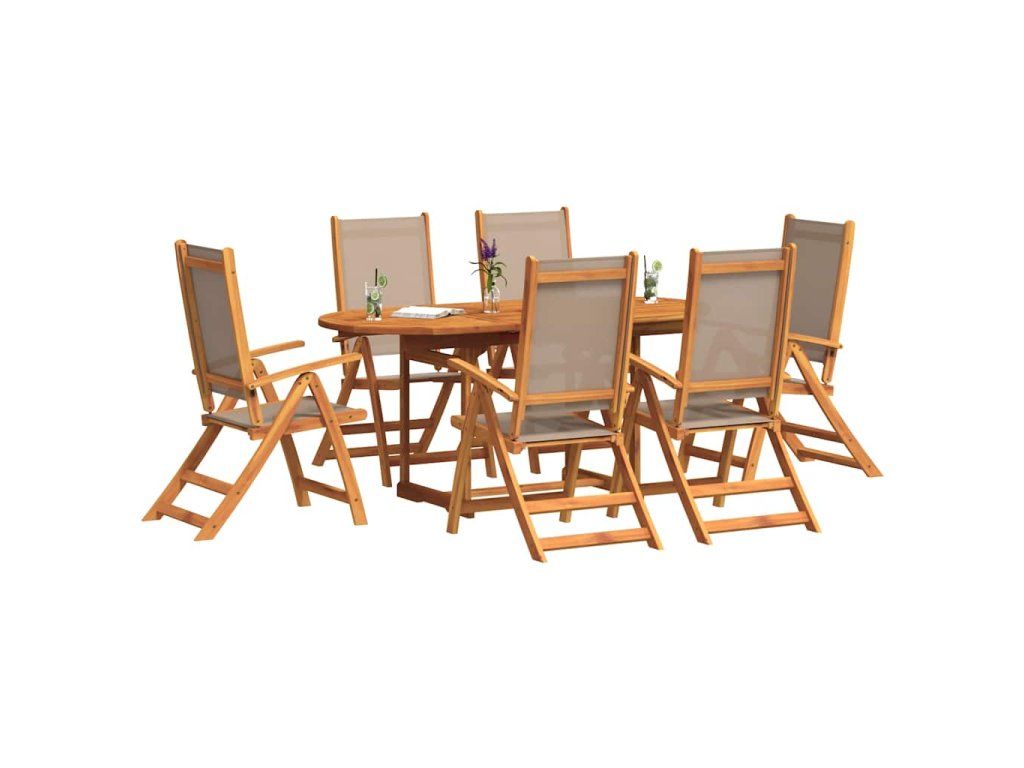 vidalXL 7-dielna záhradná jedálenská súprava akáciový masív a textilén