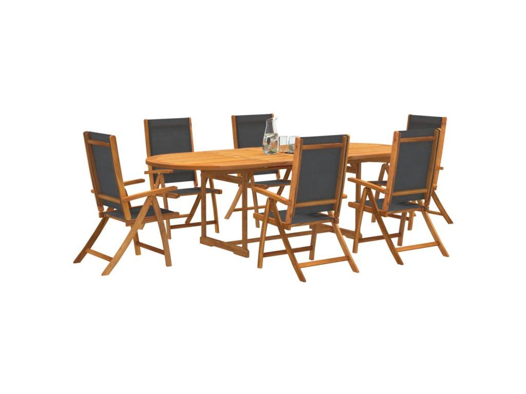 vidalXL 7-dielna záhradná jedálenská súprava akáciový masív a textilén