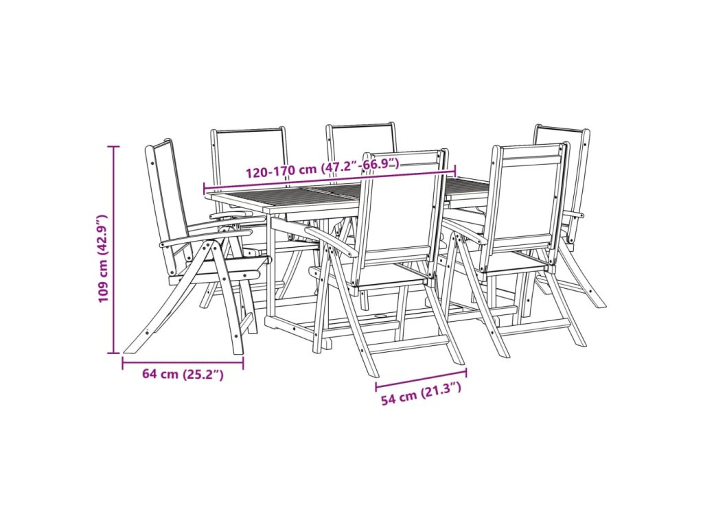 vidalXL 7-dielna záhradná jedálenská súprava akáciový masív a textilén