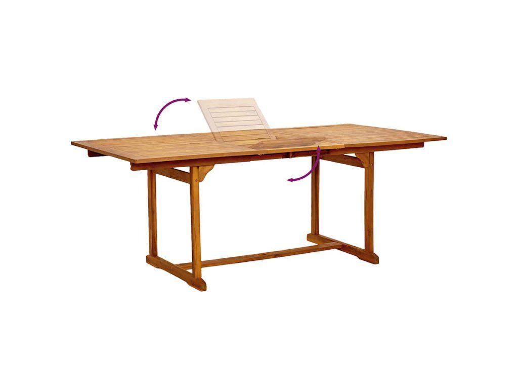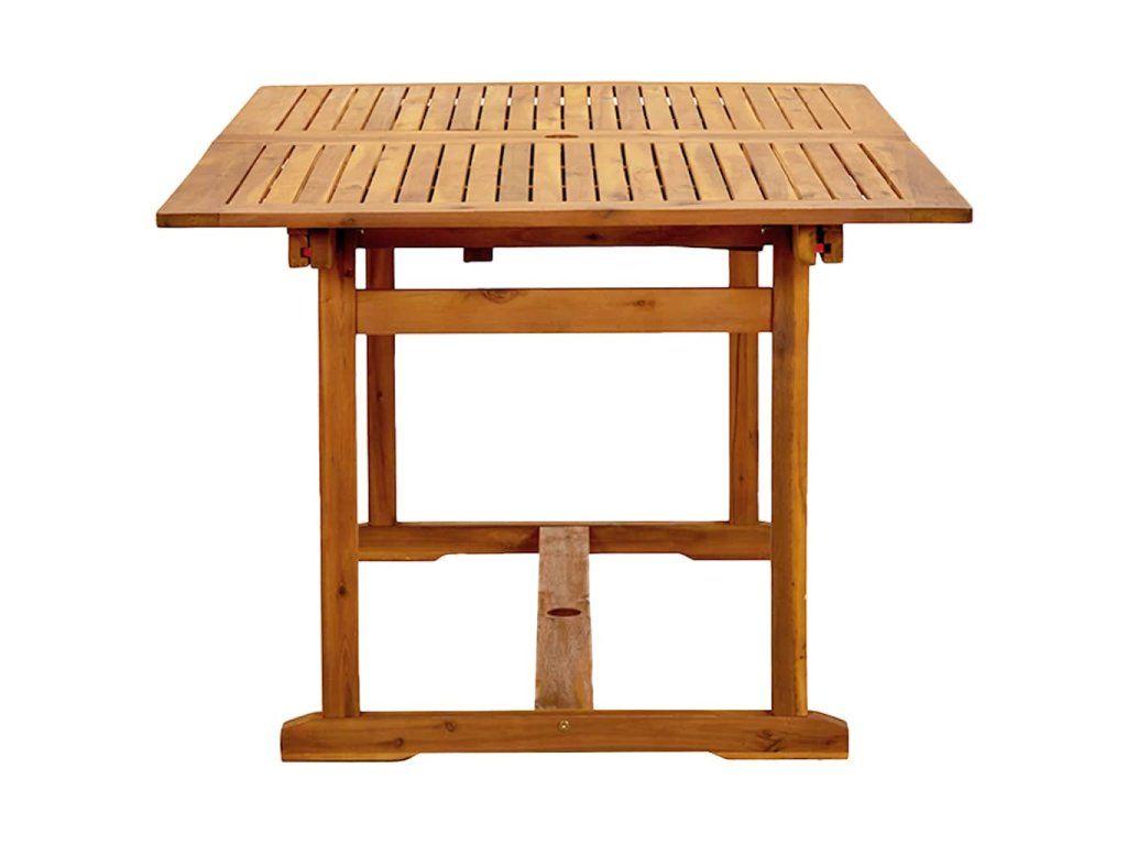 - Praktický dizajn: Vďaka špeciálnemu dizajnu je možné tento záhradný stôl predĺžiť, keď je potrebný ďalší priestor. Okrem toho je v doske stola otvor na slnečník, takže naň môžete ľahko pripevniť slnečník a vytvoriť si tak tienisté miesto.