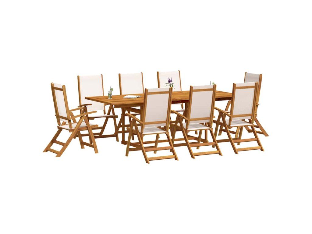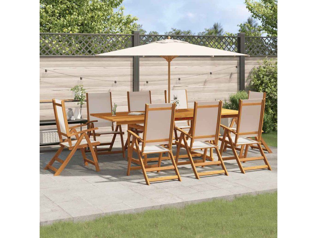 vidalXL 9-dielna záhradná jedálenská súprava akáciový masív a textilén