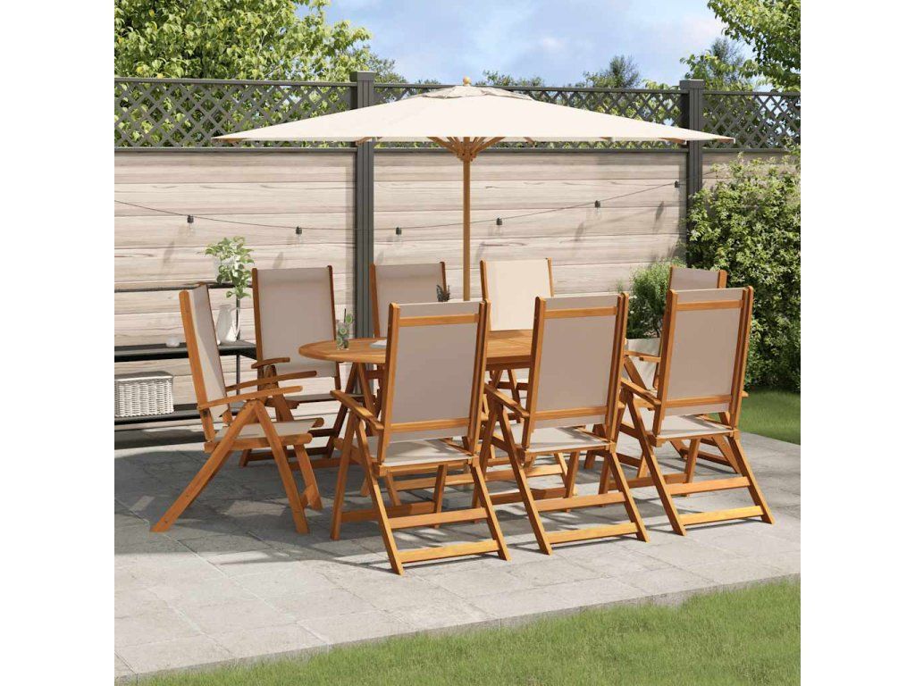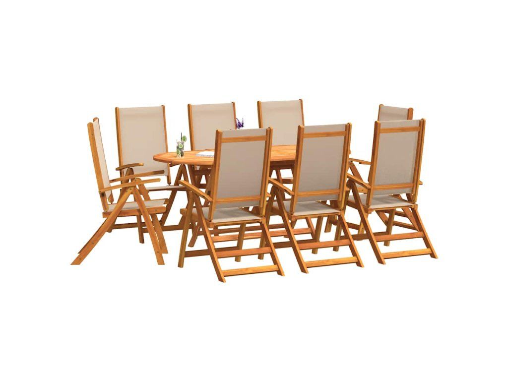 vidalXL 9-dielna záhradná jedálenská súprava akáciový masív a textilén