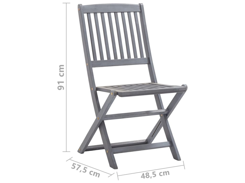 Stoly a stoličky sú vyrobené z masívneho akáciového dreva v sivej farbe s ošúchaným vzhľadom. Preto sú odolné voči poveternostným vplyvom, trvácne a ľahko sa čistia vlhkou handričkou. Vďaka robustnej drevenej konštrukcii je táto súprava veľmi stabilná. Poskytne vám pohodlie a bude skvelá na trávenie času so svojou rodinou a priateľmi. Stôl a stoličky sa navyše dajú zložiť, aby sa mohli jednoducho uskladniť a preniesť, keď sa nepoužívajú.