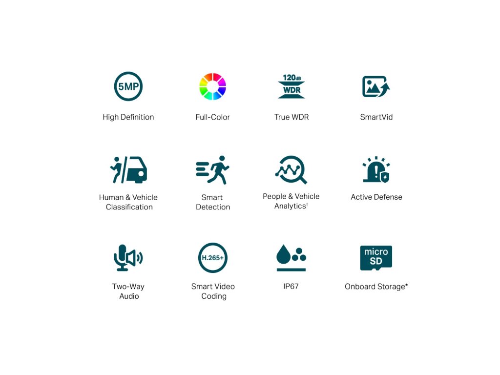 IP kamera venkovní, rozlišení 5 Mpix, ohnisko 2.8 mm, noční vidění do 30 metrů, přísvit bílým světlem (do 30 m), barevné noční vidění, chytrá detekce osob / pohybu, klasifikace osob / vozidel. Rozhraní: LAN s podporou PoE, slot pro paměťové karty. Krytí IP67. Kamera VIGI přináší křišťálově čistý obraz. Umožňuje sledování s jasnými a živými detaily 24 hodin denně. Navíc, tato kamera je dokonce schopna poskytovat kvalitní obraz i během noci. To je zásluha kombinace objektivu s velkou clonou, vysoce citlivého snímače a připojených doplňkových světel, které zajišťují, že obraz zůstává barevný i při nízkém osvětlení. Dalším důležitým prvkem je maximální rozlišení 5 MPx, které tato kamera nabízí. To znamená, že dokáže zachytit i ty nejjemnější detaily, čímž vám poskytuje kompletní a detailní přehled o tom, co se děje v dané lokalitě. *Vysoké rozlišení *Plnobarevné noční vidění (Full-Color) *Rozlišení osob a vozidel *Inteligentní detekce *Integrovaný mikrofon *Chytré kódování videa Kamera VIGI s podporou algoritmů umělé inteligence nabízí inteligentnější detekci. Budete dostávat upozornění, když někdo překročí hranici, vstoupí do nastavené oblasti, překáží kameře nebo odstraní/opustí objekty. *Detekce pohybu *Detekce neoprávněného vniknutí *Detekce odstranění předmětu *Překročení hranice *Neoprávněná manipulace s kamerou *Detekce opuštěných objektů https://www.tp-link.com/cz/business-networking/vigi-network-camera/vigi-c350/v1%20(2.8mm%20lens)/Dodatočné parametre