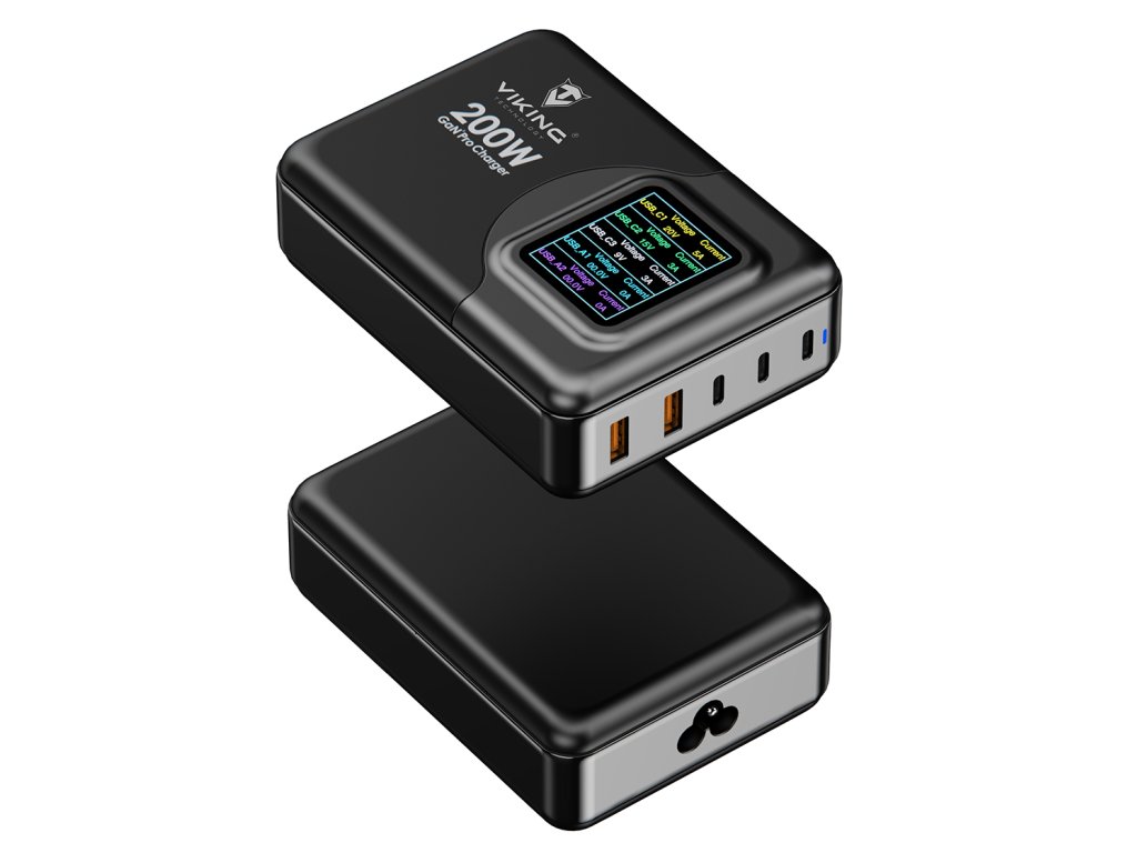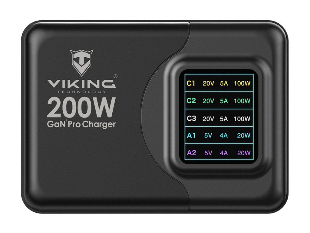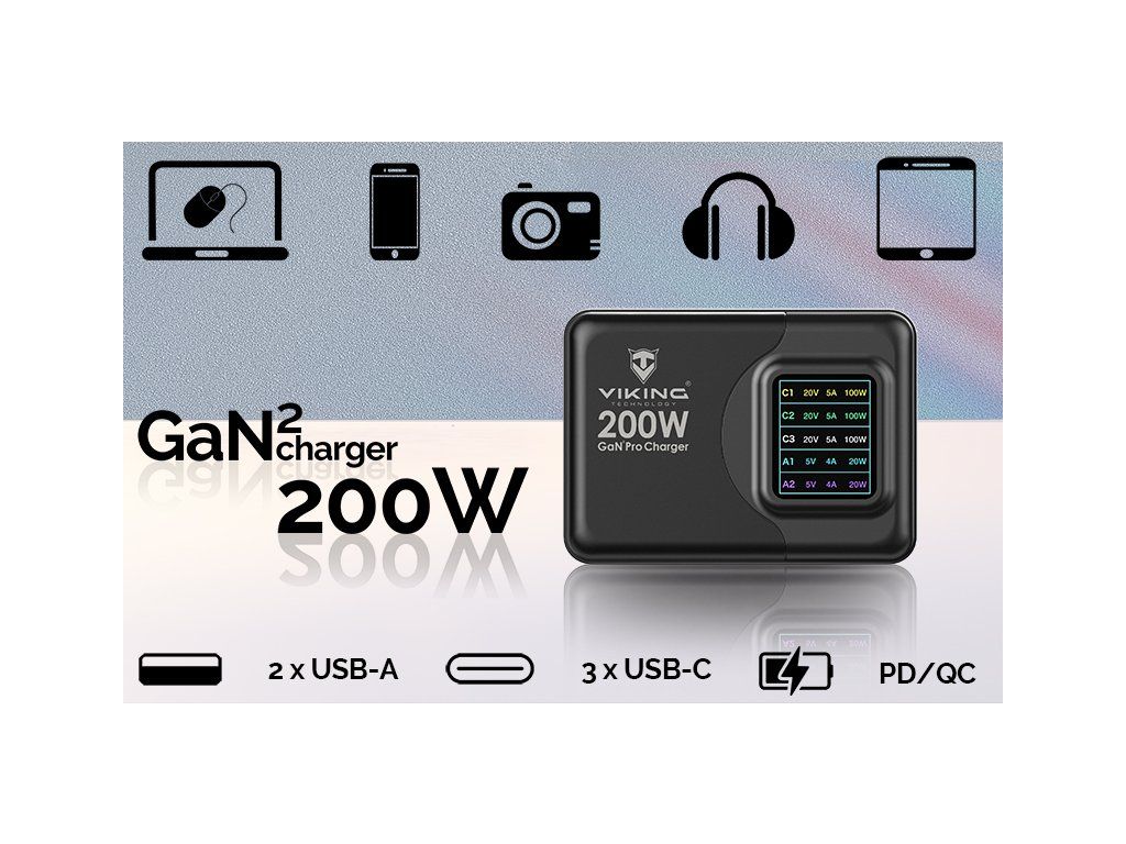 Viking USB GaN charger 200W PD PRO/sieťový adaptér/Output:3xUSB-C,2xUSB-A/Rýchlo nabíjania/