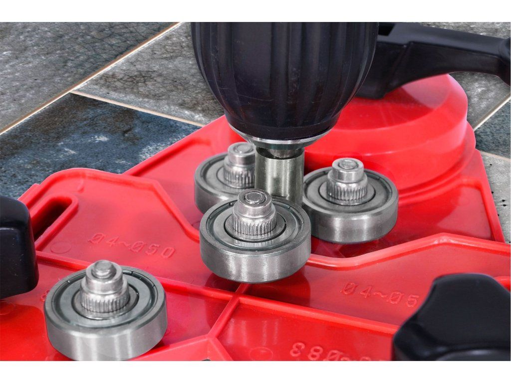 šablona z kvalitního ABS plastu je nastavitelná v rozsahu průměrů 4-83mm a lze ji použít k vrtání děr do stavebních obkladových materiálů, dlažby, keramiky, skla atd.přísavka slouží k fixaci šablony na neporézní materiály a ložiska pak zajišťují přesné vedení pracovního nástroje