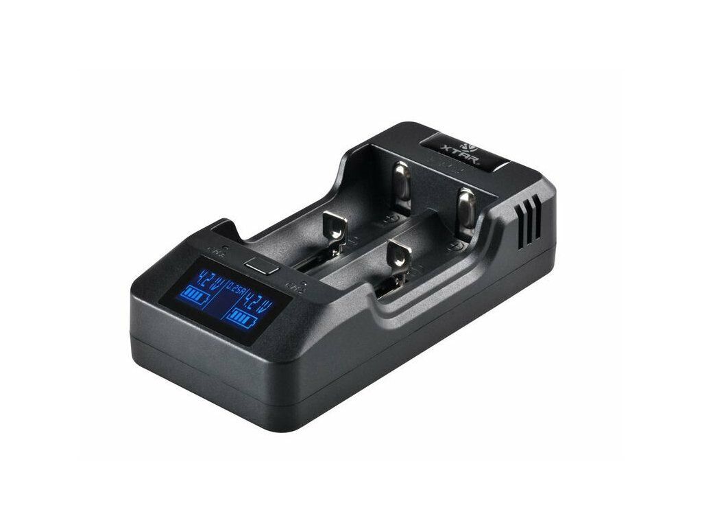 Profesionálna dvojkanálová rýchlonabíjačka XTAR VP2 Charger s LCD displejom a USB výstupom. S možnosťou výberu nabíjacieho prúdu 250, 500 a 1000 mAh s dvoma nezávislými nabíjacími kanálmi. Využíva nabíjacie algoritmy TC/CC/CV.