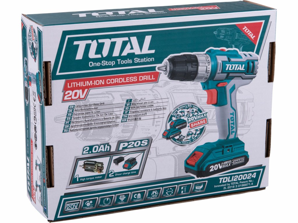 Vrtací šroubovák aku,1x2000mAh, 20V Li-ion, nabíječka 2h TOTAL-TOOLS