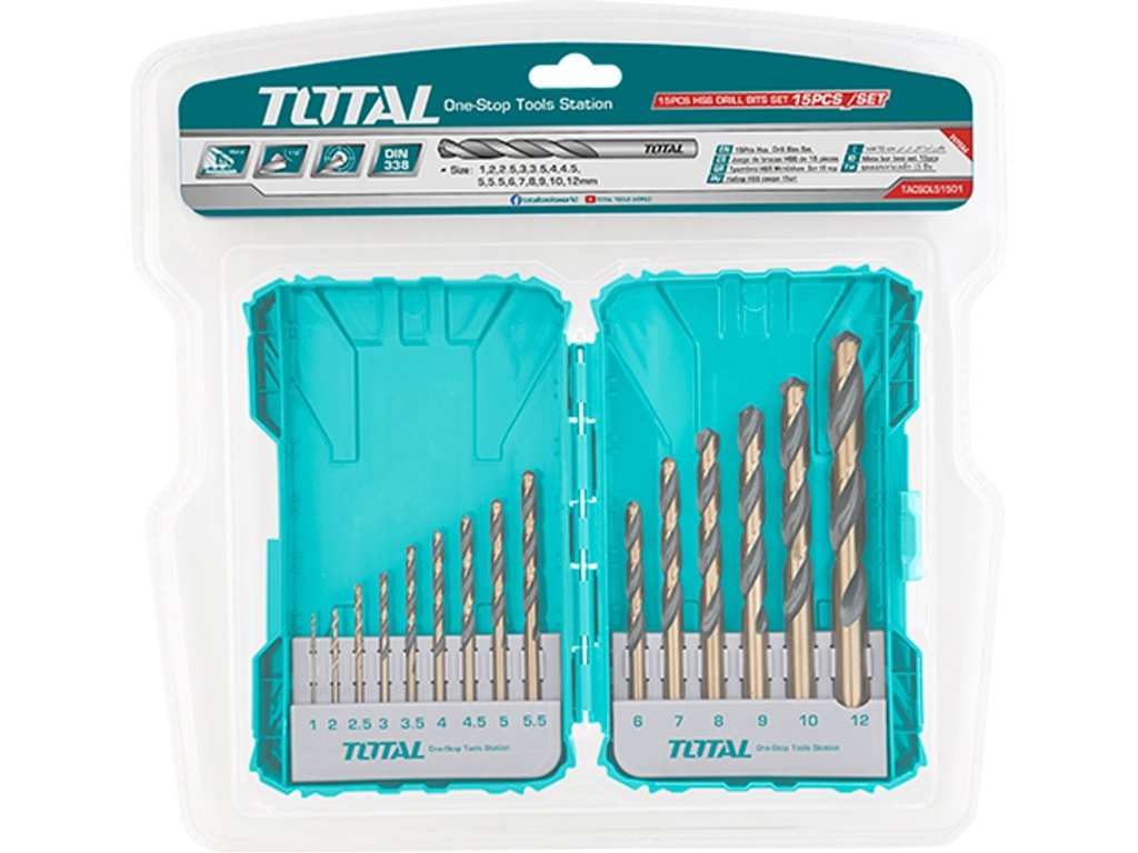 Vrtáky, sada 15ks, HSS TOTAL TOOLS