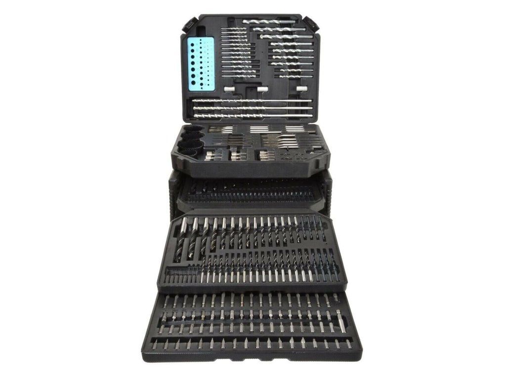 Moderní sada vrtáků a bitů. Uloženo v kufru.Obsah balení: