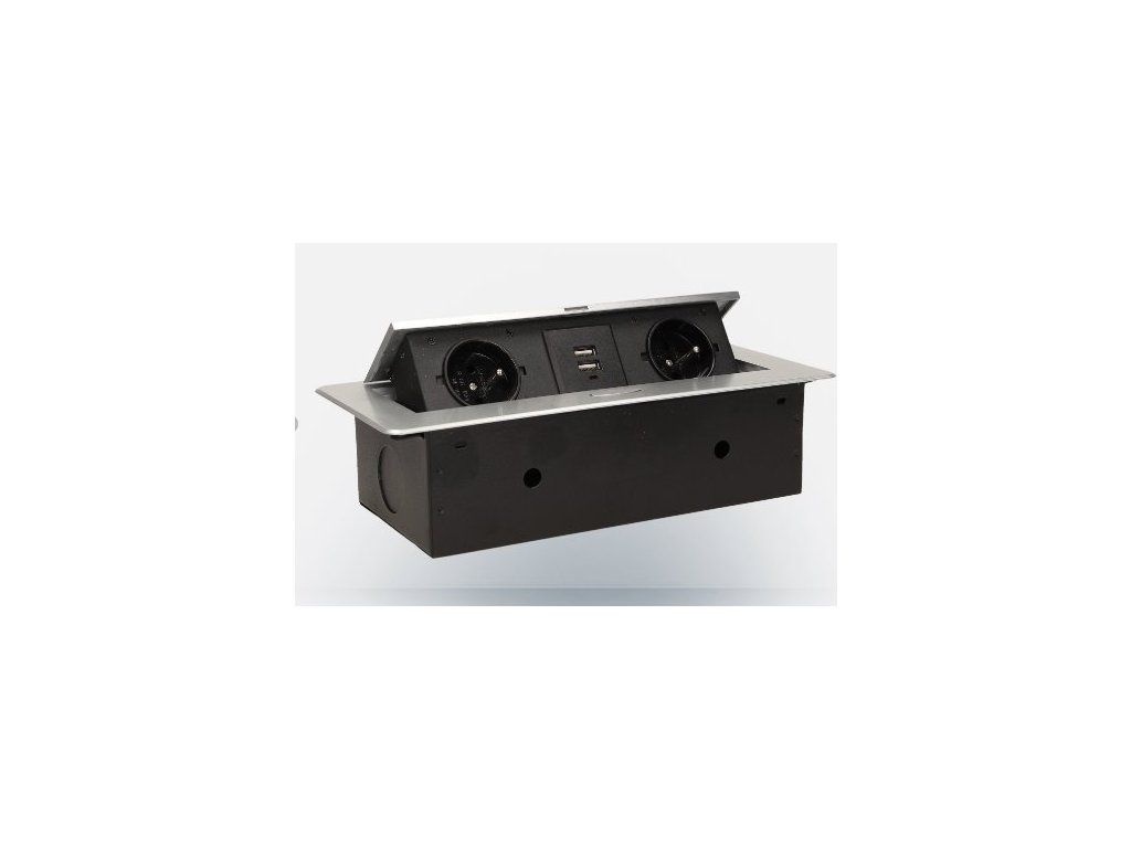 ORNO Výklopný blok zapustený, 2x 230V a 2x USB, strieborná, bez káblaSúprava dvoch napájacích zásuviek s uzemnením a membránami prúdových obvodov pripojených k USB nabíjačke v kryte skrytom hore. Zariadenie je určené na inštaláciu do stolov, dosiek a stolov, možno ho namontovať vertikálne aj horizontálne, čo umožňuje prístup k elektrickým zásuvkám. Odporúčaný kábel OWY 3 × 1,5 mm2 (nie je súčasťou dodávky). Dostupné farby: čierna, strieborná.
