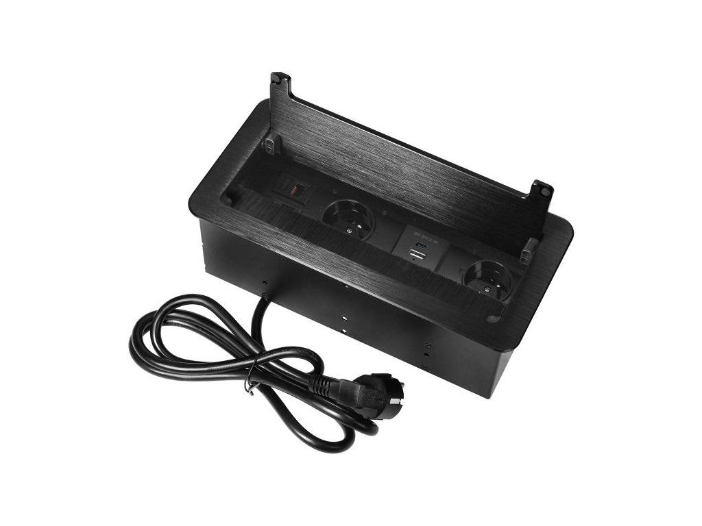 Výklopný blok zapustený ORNO OR-GM-9041/B, 2x 230V, 2x RJ45, 1x USB-A, 1x USB-C, čierna