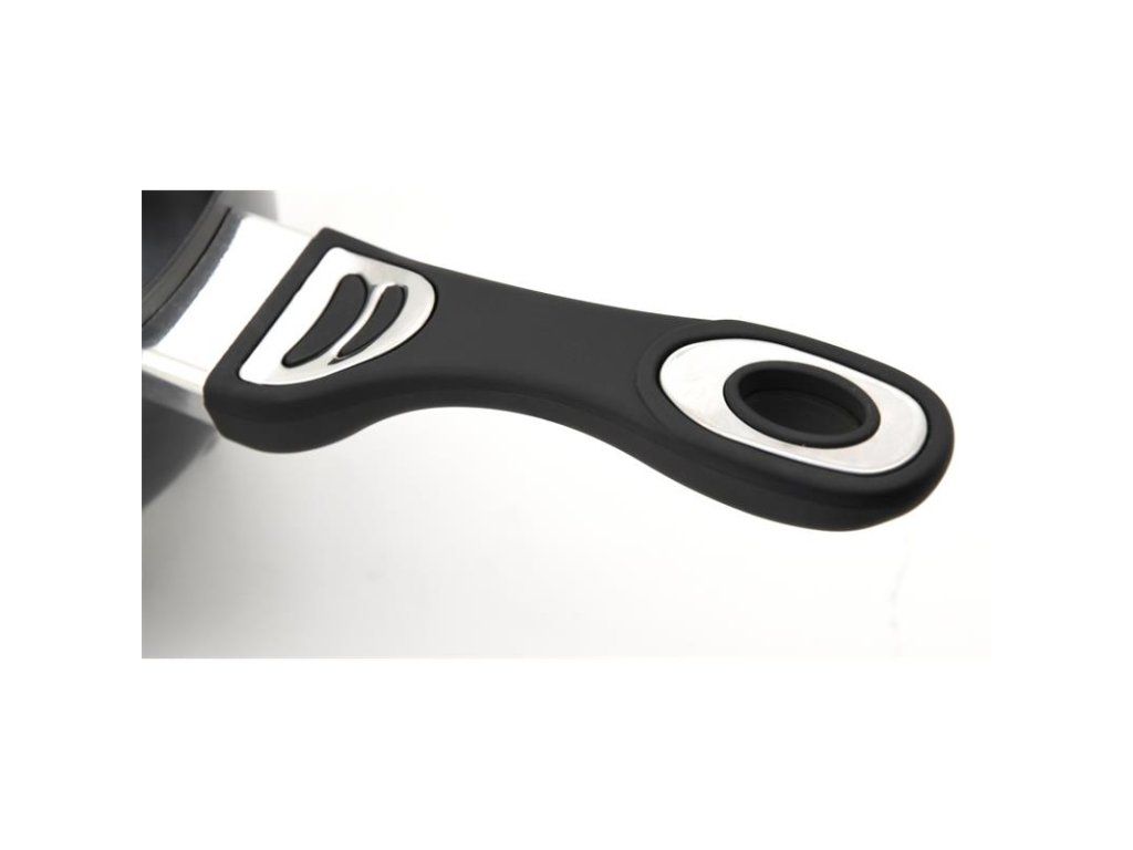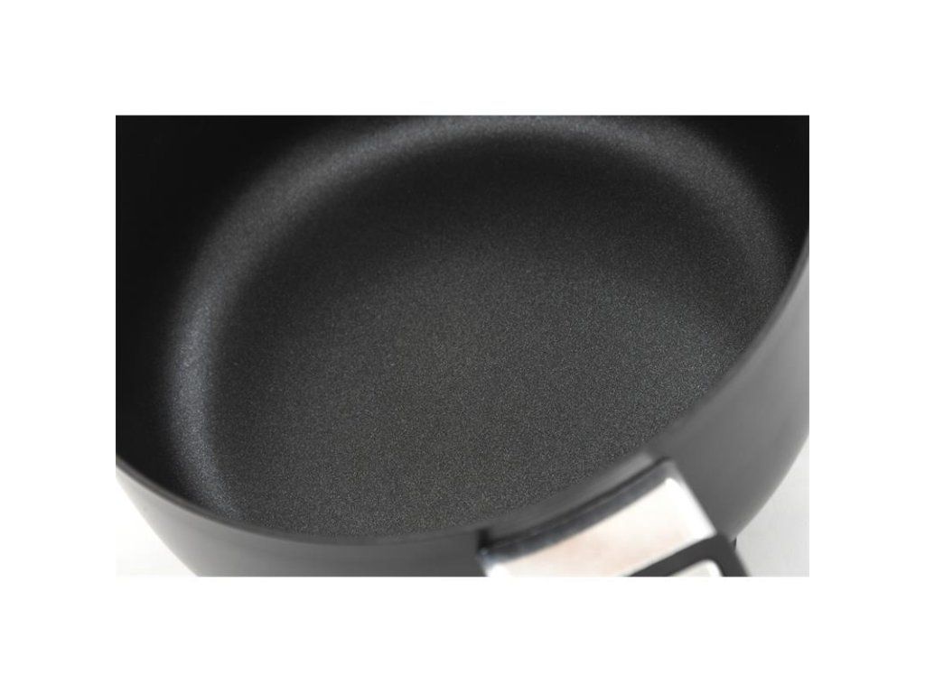 Vnútorná strana hrnca je vybavená nepriľnavým povrchom, ktorý uľahčuje čistenie a zabraňuje pripáleniu jedla. Na vonkajšej strane je viacdielna rukoväť, ktorá zaisťuje pohodlnú manipuláciu a chráni vaše ruky pred vysokými teplotami. Stabilitu zaisťujú 4 nožičky vybavené gumovými krytmi, ktoré absorbujú aj mierne nárazy.