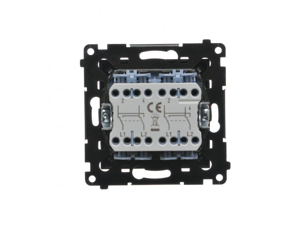 Krížový vypínač dvojitý bez piktogramu (modul) 10AX 250V, rýchlospojka, čierna matnáŠpecifikácia: