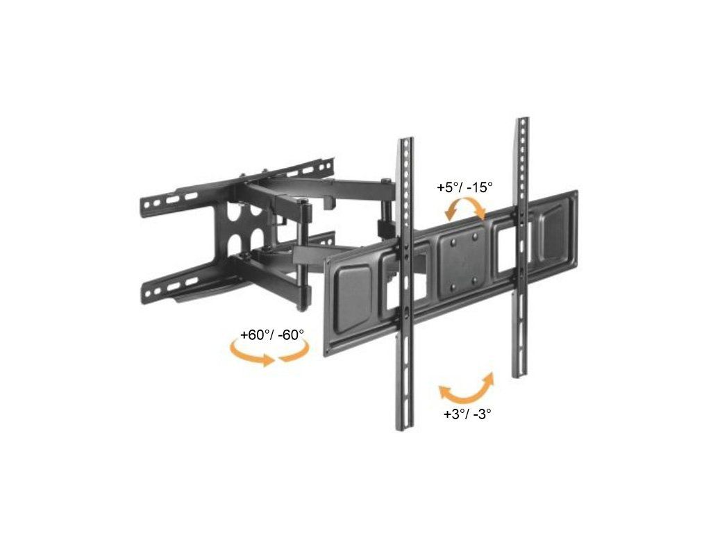 Výsuvný nástěnný držák LPA63-466 je určen pro instalaci TV s plochou obrazovkou s úhlopříčkami od 37“ do 80“. Jeho největší přednostní je robustní výsuvná konstrukce, díky níž unese TV o hmotnosti až 40 kg a zároveň umožňuje nastavit vzdálenost TV od stěny v rozsahu 62 mm až 468 mm, samozřejmostí je pak také velký rozsah polohování. Držák umožňuje snadné naklápění TV v rozsahu +5°~-15°, natočení do stran v rozsahu +60°~-60° a rotaci v rozsahu +3°~-3°, což maximalizuje flexibilitu sledování z libovolného místa v místnosti. Integrovaná svorka na kabely udržuje kabely uspořádané a chráněné. HLAVNÍ VLASTNOSTI: • Robustní, výsuvná konstrukce • Nastavitelná vzdálenost od stěny v rozsahu min. 62mm, max. 468 mm • Volně sklopitelná konstrukce pro jednoduchou změnu náklonu TV v úhlu +5°~-15° • Výsuvná konstrukce s možností stranového natočení v rozsahu +60°~-60° • Možnost rotace TV v rozsahu +3°~-3° • Univerzální design kompatibilní s širokou řadů televizorů různých modelů a značek • Optimalizovaná velikosti balení pro nižší náklady na přepravu a skladování tj. ideální produkt pro e-commerce prodejce • Jednoduchá a rychlá montáž • Součástí dodávky jsou plastové vázací pásky určené pro organizaci vedení kabelů • Součástí dodávky je kompletní montážní příslušenství • Podporované rozteče VESA: 75x75,100x100,100x150,150x100,100x200,200x100,150x150,200x200,300x200,400x200,300x300,400x300,400x400, 600x400 Nástěnný držák pro TV Brateck LPA63-466 je nejen praktickým a funkčním doplňkem pro vaši televizi, ale také designovým prvkem do vaší domácnosti nebo kanceláře. S tímto držákem můžete svou televizi umístit do ideální polohy pro optimální sledovací zážitek a zároveň si užívat klidu a jistoty pevného a bezpečného uchycení. PARAMETRY: • Určení: pro TV • Způsob montáže: nástěnný • Počet TV: 1 • Maximální náklon (nahoru, dolů): +5°/-15° • Maximální vychýlení (vpravo, vlevo): +60°/-60° • Maximální otáčení TV: +3°/-3° • Nosnost držáku: 40 kg • Min. úhlopříčka obrazovky: 37 palce • Max. úhlopříčka obrazovky: 80 palce • Barva: černá mat • Rozměry (Š x V x H): 468mm x 655mm x 420mm • Hmotnost: 4.77 kgDodatočné parametre