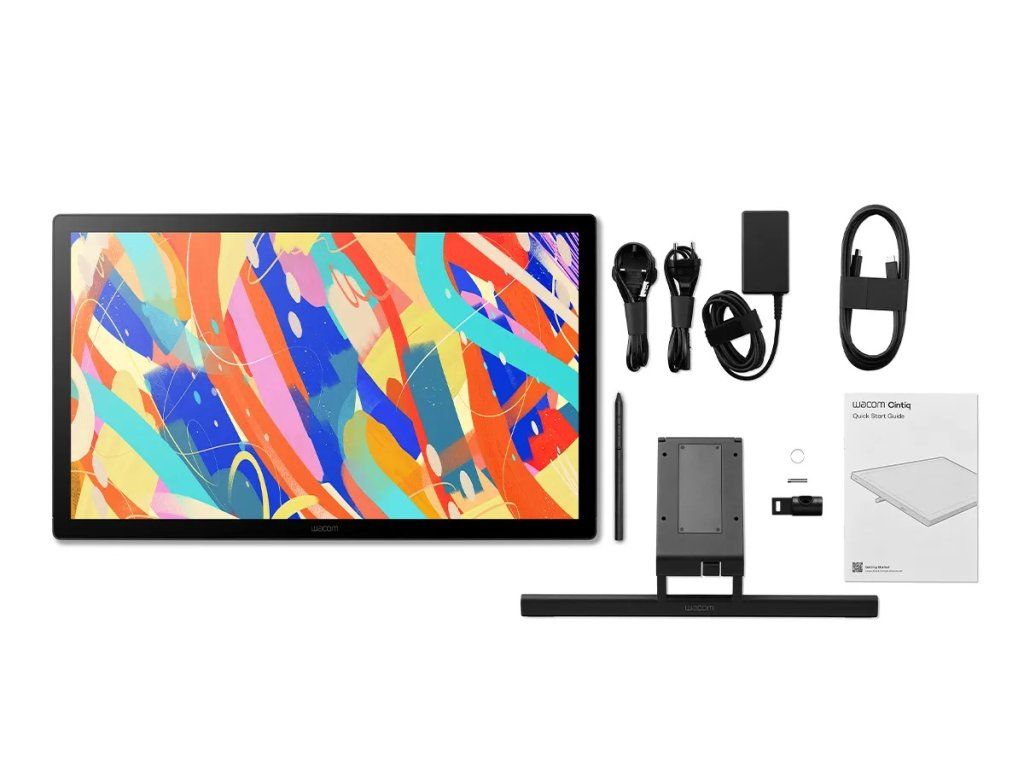 Wacom Cintiq 24 *Důvěra kreativců po celém světě pro spolehlivý výkon perového displeje *Prostorný 23,8'' displej s rozlišením 2,5K a přesným podáním barev *Součástí je nastavitelný stojan (16°–69°) pro ergonomické pohodlí *Kompatibilní s držáky VESA a volitelným stojanem *Pero Pro Pen 3 s přizpůsobitelným úchopem, hmotností a přepínači *Čisté pracovní prostředí s chytrým vedením kabelů *Skvělý design bez ventilátoru pro nerušenou kreativitu Informace o displeji Rozlišení obrazovky: WQHD 2560 x 1440 pixelů Velikost obrazovky: 23,8 palce Technologie: IPS Sklo / povrch: AG Sklo Aktivní plocha: 527 × 296 mm (20,7 x 11,7 palce) Poměr stran: 16:9 Podporované rozlišení: 640 x 480 při 60 Hz 720 x 480 při 60 Hz 720 x 576 při 50 Hz 800 x 600 při 60 Hz 1024 x 768 při 60 Hz 1280 x 720 při 50/60 Hz 1280 x 1024 při 60 Hz 1600 x 1200 při 60 Hz 1920 x 1080 při 50/60 Hz 2560 x 1440 při 60 Hz Rozteč pixelů: 0,2058 (V) x 0,2058 (Š) mm Pozorovací úhel: 178 stupňů (89/89) H / 178 stupňů (89/89) V (typ) Barevná hloubka: 16,7 milionu (8 bitů), 8bit x RGB = 24bit Poměr pokrytí barevného gamutu: sRGB 100 % (CIE1931) (typ) Kontrastní poměr: 1000:1 (typ) Jas: 350 cd/m2 (typ) Doba odezvy (G2G): 12 ms (typ) Specifikace pera Úrovně tlaku pera: 8192 úrovní Typ pera: Citlivé na tlak, bezdrátové, bez baterií, selektivní rukojeti/vyvážení/boční přepínač Počet přepínačů: 3 boční přepínače Podpora naklápění pera: 60 stupňů Výška pro čtení: 10 mm Rozlišení pera: 5080 lpi Technologie pera: Technologie elektromagnetické rezonance Maximální míra hlášení: 240 hlášení/sekundu Rozměry pera: 160 × 8,4 mm Hmotnost pera: 9,1 g Specifikace dotykového ovládání Vícedotykové ovládání: Ne Konektivita I/O porty: 1x HDMI typu C (mini HDMI) 1x USB typu C Rozměry a hmotnost: Rozměry produktu (D x Š x V): 340 × 568 × 21 mm Hmotnost produktu: 4,8 kg Systémové požadavky Systémové požadavky: Windows 10 nebo novější (nejnovější servisní balíček/build), macOS 13 nebo novější, Android™ 8.0 a vyšší Hardwarové požadavky: Port USB-C s režimem DisplayPort™ Alt* nebo port HDMI a port USB, přístup k internetu pro stažení ovladače. Pro dosažení maximálního rozlišení a obnovovací frekvence na Wacom Cintiq 24 musí porty hostitelského počítače podporovat rozlišení 2560 x 1440 při 60 Hz. *Podporován je také Thunderbolt 3 nebo novější.Dodatočné parametre