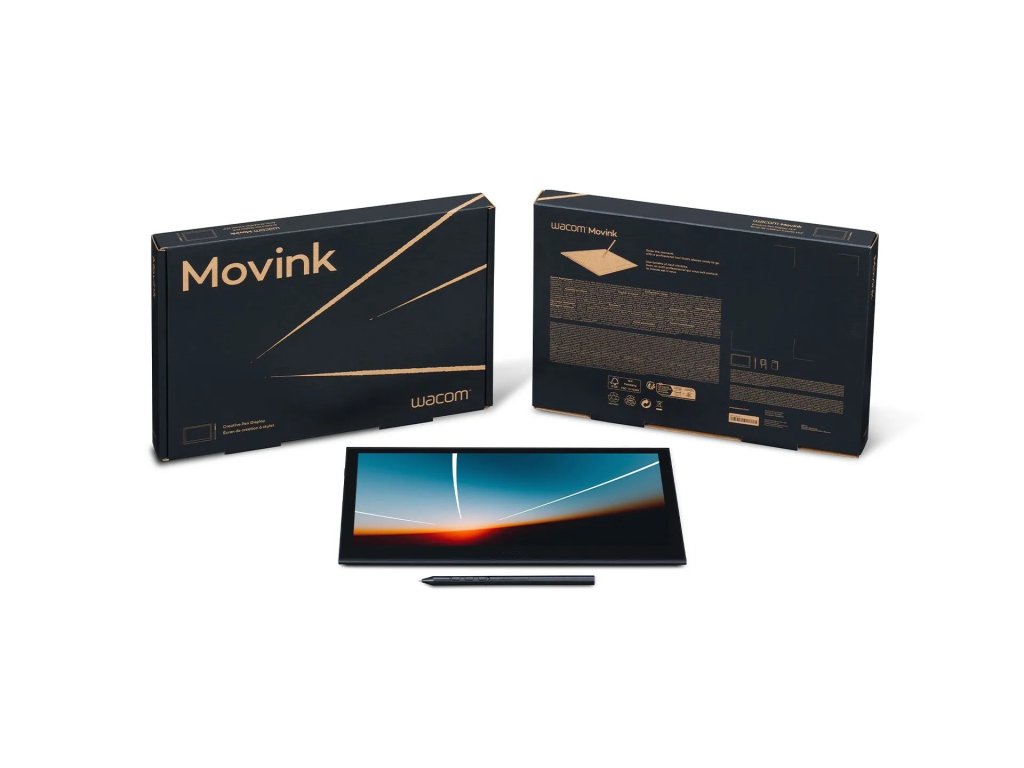 Wacom Movink 13 Ponořte se do nové generace kreativity s naším průlomovým OLED displejem s perem, který byl navržen speciálně pro digitální kreativce na cestách. Zažijte bezkonkurenční výkon a přenosnost, protože Wacom Movink kombinuje nejlepší zážitek z pera s brilantním 13,3'' Full HD OLED displejem Samsung, to vše v super tenkém a ultralehkém zařízení. Ať už jste profesionální umělec, vývojář her, kameraman, fotograf nebo student designu, Wacom Movink je vaším dokonalým kreativním společníkem . Díky elegantnímu designu a pokročilé technologii nabízí Movink hlubší černou, vyšší kontrast a zářivé barvy, což zajišťuje pohlcující a přesný tvůrčí zážitek. Objevte budoucnost digitálního umění s Wacom Movinkem. *První profesionální OLED displej s perem a sklem Corning Gorilla Glass *Nízká hmotnost, štíhlý a robustní *Pokrytí DCI-P3 100 % a Adobe RGB 95 % *Vysoká přesnost barev a kalibrace z výroby *Možnosti kalibrace pro přesnou profesionální správu barev (2 profily uložené v zařízení) *Připojení jedním kabelem, dvě programovatelná boční tlačítka *Vícedotykové ovládání a ovládání perem včetně gest perem *Používejte pera třetích stran, jako například Lamy, Staedtler nebo Kaweco Informace o displeji Velikost obrazovky: 13'' Rozlišení obrazovky: Full HD Barevná hloubka: 1,07 miliardy (10 bitů), 10 bitů x RGB = 30 bitů Technologie: OLED Sklo / povrch: AG sklo + AF povlak Aktivní plocha: 294 × 165 mm (11,6 x 6,5 palce) Poměr stran: 16:9 Podporované rozlišení: 640x480 při 60 Hz 720x480 při 60 Hz 720x576 při 50 Hz 800x600 při 60 Hz 1024x768 při 60 Hz 1280x720 při 50/60 Hz 1280x1024 při 60 Hz 1600x1200 při 60 Hz 1920x1080 při 50/60 Hz Rozteč pixelů: 0,15300 (V) x 0,15300 (Š) mm Poměr pokrytí barevného gamutu: DCI-P3 100 % (CIE 1931) Adobe RGB 95 % (CIE 1931) Kontrastní poměr: 100 000:1 Jas: 350 cd/m2 Doba odezvy (G2G): 0,2 ms Specifikace pera Úrovně tlaku pera: 8192 úrovní Typ pera: Citlivý na tlak, bezdrátový, bez baterií Počet přepínačů: 3 boční přepínače Podpora naklápění pera: 60 stupňů Rozlišení pera: 5080 lpi Technologie pera: Technologie elektromagnetické rezonance Výška pro čtení: 11 mm Maximální míra hlášení: 240 hlášení/sekundu Rozměry pera: 160 × 8,4 mm Hmotnost pera: 9,7 g Specifikace dotykového ovládání Vícedotykové ovládání: Ano Dotyková technologie: Projektovaná kapacitní technologie Dotyková kapacita: 10 prstů Konektivita I/O porty: 2 x USB-C DisplayPort Rozměry a hmotnost: Rozměry produktu (D x Š x V) (mm): 319,5 × 205,2 × 4 až 6,6 mm Hmotnost produktu (kg): 420 g Systémové požadavky Systémové požadavky: Windows 10 (nejnovější servisní balíček/build) nebo novější, macOS 12 nebo novější, Android 8.0 a vyšší, nejnovější verze ChromeOS Hardwarové požadavky: Port USB-C s režimem DisplayPort™ Alt nebo Thunderbolt 3 nebo novějšímDodatočné parametre