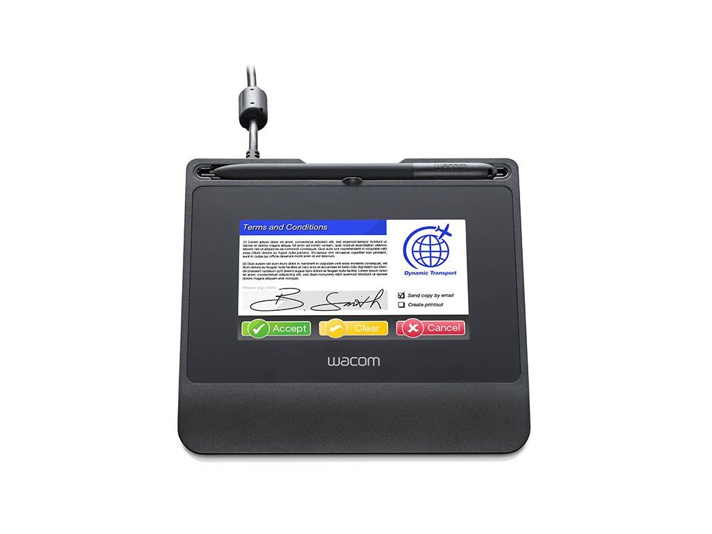 Podepisovací tablet STU-540 nabízí 5'' barevnou obrazovku s vysokým rozlišením a tvrzené trvanlivé krycí sklo. Široká škála možností připojení, šifrování na nejvyšší úrovni. * Patentované akumulátorové pero bez baterií s 1024 úrovněmi citlivosti na tlak pro přesné zachycení jedinečného profilu podpisu, včetně biometrických dat. * Tvrzené krycí sklo s antireflexní úpravou poskytuje vylepšené prohlížení a povrch podpisu s přirozeným pocitem pera na papíře. * Nejmodernější šifrování AES 256 / RSA2048 pro provádění bezpečných transakcí. * Nativní podpora pro Citrix v7.6.3 a novější ve standardním režimu USB. * Režim Virtual COM Port (VCP) je k dispozici pro kompatibilitu s Citrix v6.5 a dalšími virtualizovanými desktopovými prostředími. * Režim „Prezentace“ může spouštět reklamní a propagační zprávy přímo ze samotné klávesnice. * Přizpůsobitelná klávesnice umožňuje vstup pomocí uživatelsky definovaného uživatelského rozhraní. * Vizualizace WILL (Wacom Ink Layer Language) pro zobrazení nejlepšího a nejautentičtějšího zobrazení vašeho vlastnoručního elektronického podpisu. * UID (Unique hardware ID) lze použít k potvrzení přesné jednotky použité k zachycení konkrétního podpisu. * Sériové připojení je k dispozici jako volitelné příslušenství se samostatnou sadou příslušenství. * STU SDK (Software Development Kit) a Signature SDK jsou k dispozici pro vývojáře, kteří chtějí integrovat podporu pro podpisové podložky Wacom do svých aplikací. Specifikace: Rozměry: 163 x 157 x 10 mm Komunikační rozhraní: STU-540: USB 2.0 / RS-232 Napájení: USB Typ displeje: Amorfní TFT LCD Velikost obrazovky: 5 ''(108 x 65 mm) Nativní rozlišení : 800 x 480 pixelů Čtecí technika: Elektromagnetická rezonance (EMR) Hladina tlaku pera: 1024 (neinterpolované) Akumulátorové pero Záruka: 3 Roky https://www.wacom.com/en-tw/enterprise/business-solutions/hardware/signature-pads/STU-540 https://www.wacom.com/en-es/products/pen-tablets/one-by-wacom https://www.wacom.com/en-es/products/pen-tablets/wacom-intuosDodatočné parametre