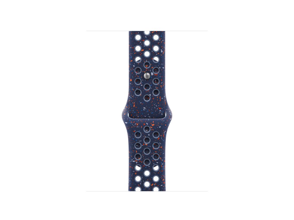 40mm Blue Ribbon sportovní řemínek Nike Tenhle sportovní řemínek Nike má vylisované otvory pro větší vzdušnost, je odolný, pevný a přitom překvapivě poddajný. Obsahuje barevné vločky, které tvoří náhodné vzory, takže každý řemínek je originál. Jeho hladký, hutný materiál se elegantně ovine kolem zápěstí a příjemně sedí. A zapíná se na hliníkový kolíček s matným povrchem, do kterého je pečlivě vygravírované logo Nike Run. *Materiál: Hliník, Fluoroelastomer Kompatibilita Modely Apple Watch *38 mm *40 mm *41 mm S/M: Na zápěstí s obvodem 130–180 mm.Dodatočné parametre