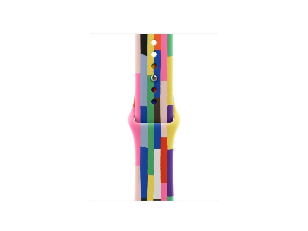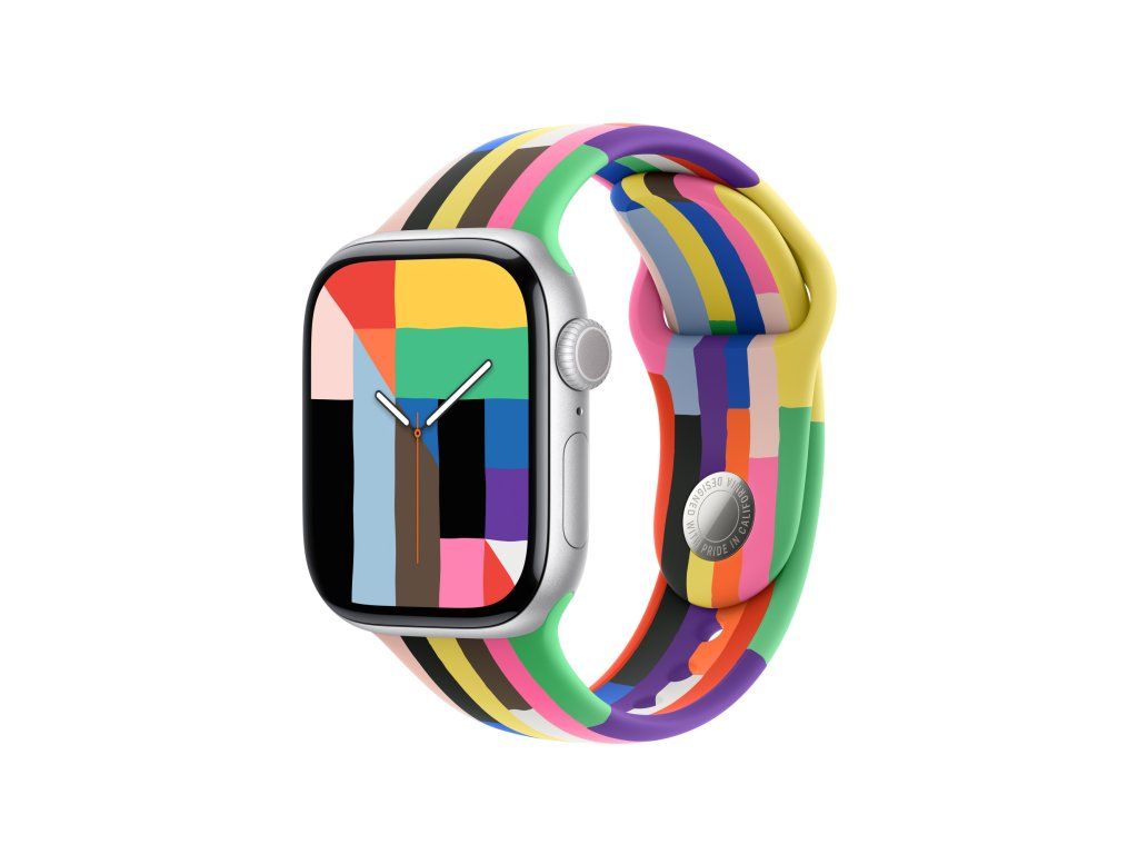 40mm sportovní řemínek Pride Edition – M/L Tenhle pestrý řemínek s duhovými pruhy různých tvarů i velikostí oslavuje sílu, krásu a individualitu komunit LGBTQ+ po celém světě. Letošní sportovní řemínek Pride Edition a barevně sladěný ciferník Pride Harmony s hrdostí oslavují sílu, krásu a jedinečnost LGBTQ+ komunity jasnými duhovými pruhy různých tvarů a velikostí. Výrazné pruhy čerpají inspiraci v barevné paletě různých vlajek Pride. Černá a hnědá symbolizují černošské a latinskoamerické komunity i lidi zasažené HIV/AIDS. Světle modrá, růžová a bílá zastupují transgenderové a genderově nekonformní jednotlivce. Každý řemínek se ručně sestavuje ze samostatných pruhů vysoce funkčního barveného fluoroelastomeru, které se tlakově slisují do jednoho celku a utvoří jemné a přitom výrazné variace. Žádné dva řemínky nejsou úplně stejné, což odráží jedinečnosti členů LGBTQ+ komunity. Na inovativním kolíčkovém zapínání je laserově vygravírovaný slogan „Designed with pride in California“ (Navržený s hrdostí v Kalifornii). Apple s hrdostí finančně podporuje organizace, které slouží LGBTQ+ komunitám. Kompatibilita Modely Apple Watch *38 mm *40 mm *41 mmDodatočné parametre