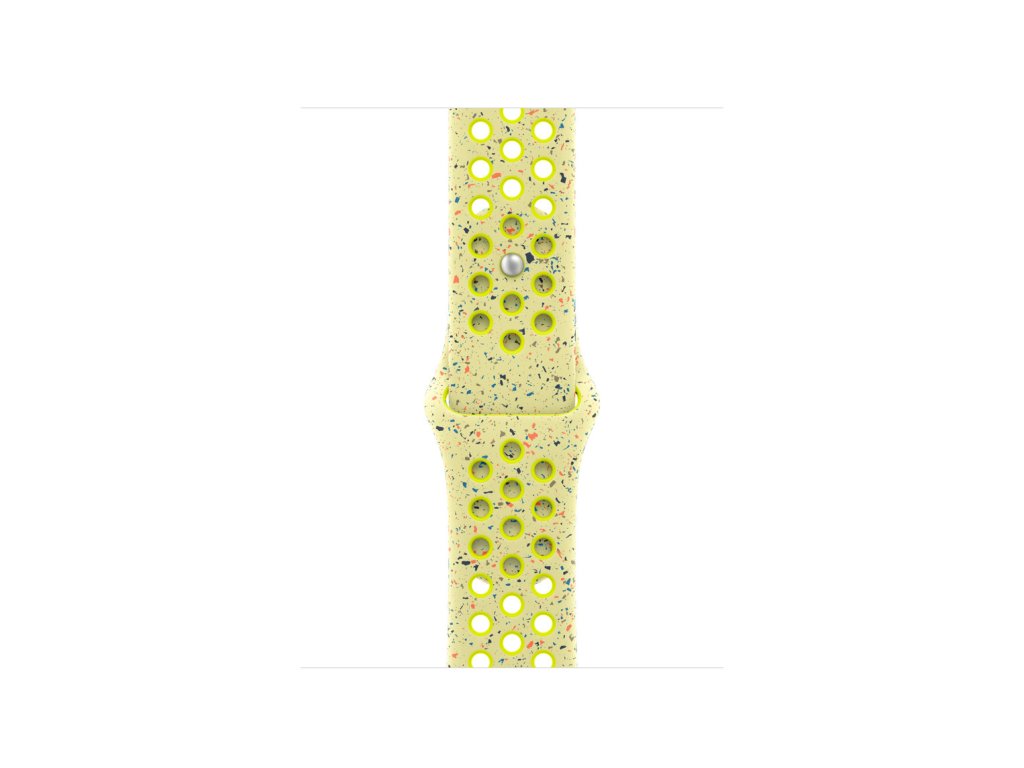 40mm Volt Splash sportovní řemínek Nike Tenhle sportovní řemínek Nike má vylisované otvory pro větší vzdušnost, je odolný, pevný a přitom překvapivě poddajný. Obsahuje barevné vločky, které tvoří náhodné vzory, takže každý řemínek je originál. Jeho hladký, hutný materiál se elegantně ovine kolem zápěstí a příjemně sedí. A zapíná se na hliníkový kolíček s matným povrchem, do kterého je pečlivě vygravírované logo Nike Run. *Materiál: Hliník, Fluoroelastomer Kompatibilita Modely Apple Watch *38 mm *40 mm *41 mm M/L: Na zápěstí s obvodem 150–200 mm.Dodatočné parametre