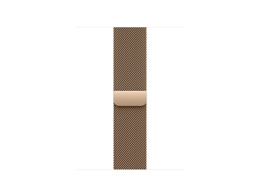 42mm zlatý milánský tah Moderní pojetí designu vyvinutého v Miláně koncem 19. století. Náramek z hladkého nerezového pletiva, tkaného na speciálních italských strojích, se elegantně ovine kolem zápěstí. A protože je milánský tah plně magnetický, dá se libovolně nastavit a vždycky dokonale padne. Nerezové oceli dodává její specifický vzhled přidaná vrstva vyrobená procesem fyzikální depozice z plynné fáze. Milánský tah obsahuje z 80 % recyklovanou nerezovou ocel v pletivu a 100% recyklované prvky vzácných zemin ve všech magnetech. 100 % elektřiny spotřebované při jeho výrobě pochází z čistých zdrojů. V krabici Milánský tah k Apple Watch Materiál: 80% podíl recyklované nerezové oceli, Magnety ze 100% recyklovaných prvků vzácných zemin Kompatibilita Modely Apple Watch *38 mm *40 mm *41 mm *42 mmDodatočné parametre