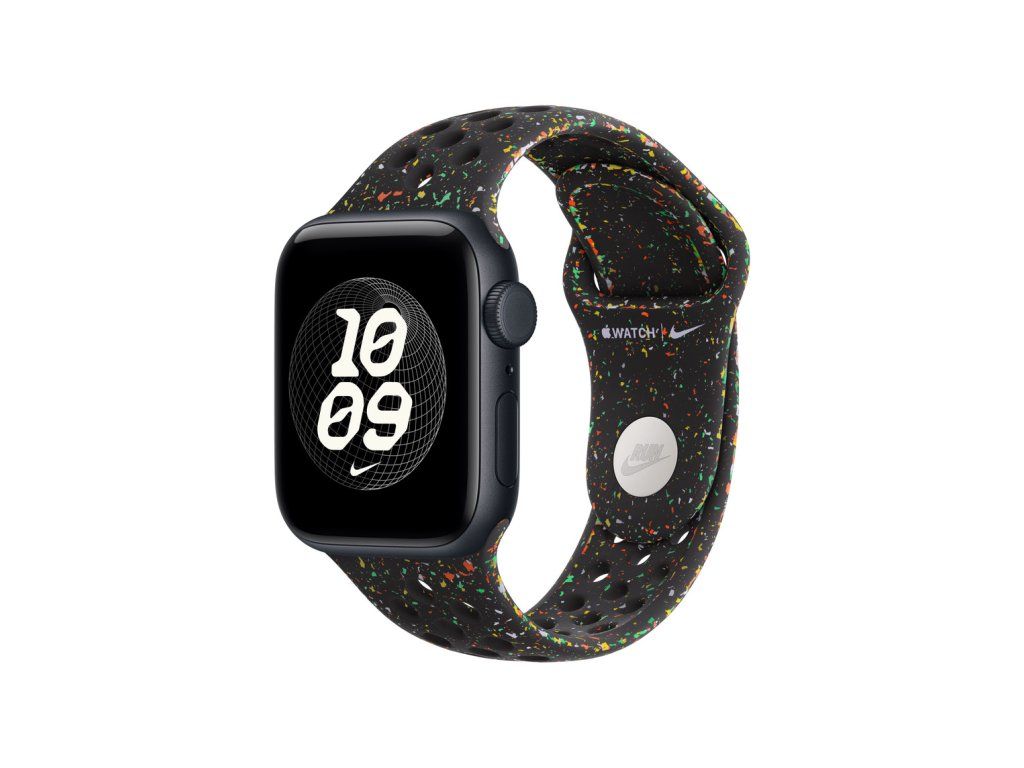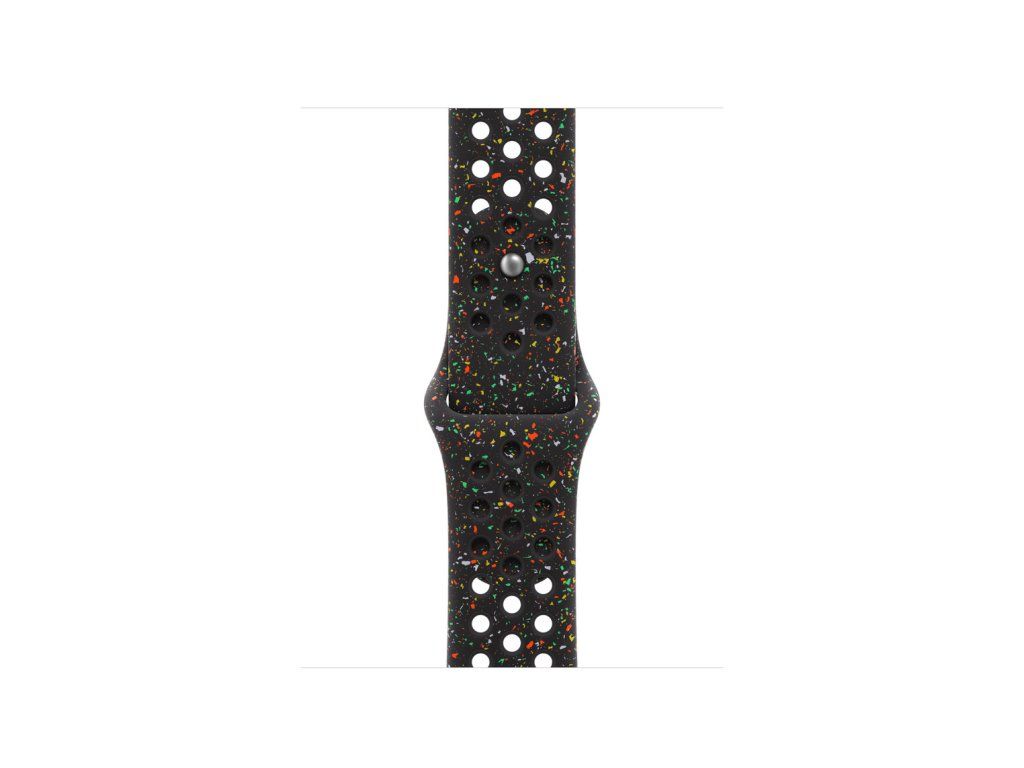 42mm Midnight Black sportovní řemínek Nike Tenhle sportovní řemínek Nike má vylisované otvory pro větší vzdušnost, je odolný, pevný a přitom překvapivě poddajný. Obsahuje barevné vločky, které tvoří náhodné vzory, takže každý řemínek je originál. Jeho hladký, hutný materiál se elegantně ovine kolem zápěstí a příjemně sedí. A zapíná se na hliníkový kolíček s matným povrchem, do kterého je pečlivě vygravírované logo Nike Run. *Materiál: Hliník, Fluoroelastomer Kompatibilita Modely Apple Watch *38 mm *40 mm *41 mm *42 mm M/L: Na zápěstí s obvodem 150–200 mm.Dodatočné parametre