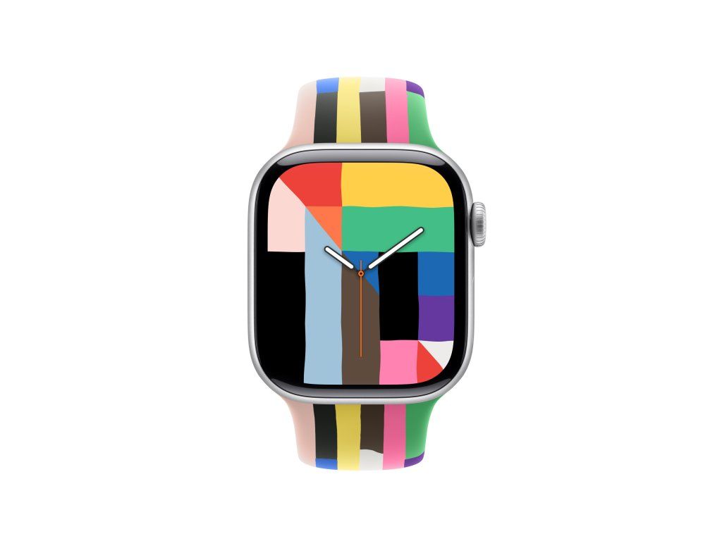 42mm sportovní řemínek Pride Edition – M/L Tenhle pestrý řemínek s duhovými pruhy různých tvarů i velikostí oslavuje sílu, krásu a individualitu komunit LGBTQ+ po celém světě. Letošní sportovní řemínek Pride Edition a barevně sladěný ciferník Pride Harmony s hrdostí oslavují sílu, krásu a jedinečnost LGBTQ+ komunity jasnými duhovými pruhy různých tvarů a velikostí. Výrazné pruhy čerpají inspiraci v barevné paletě různých vlajek Pride. Černá a hnědá symbolizují černošské a latinskoamerické komunity i lidi zasažené HIV/AIDS. Světle modrá, růžová a bílá zastupují transgenderové a genderově nekonformní jednotlivce. Každý řemínek se ručně sestavuje ze samostatných pruhů vysoce funkčního barveného fluoroelastomeru, které se tlakově slisují do jednoho celku a utvoří jemné a přitom výrazné variace. Žádné dva řemínky nejsou úplně stejné, což odráží jedinečnosti členů LGBTQ+ komunity. Na inovativním kolíčkovém zapínání je laserově vygravírovaný slogan „Designed with pride in California“ (Navržený s hrdostí v Kalifornii). Apple s hrdostí finančně podporuje organizace, které slouží LGBTQ+ komunitám. Kompatibilita Modely Apple Watch *38 mm *40 mm *41 mm *42 mmDodatočné parametre