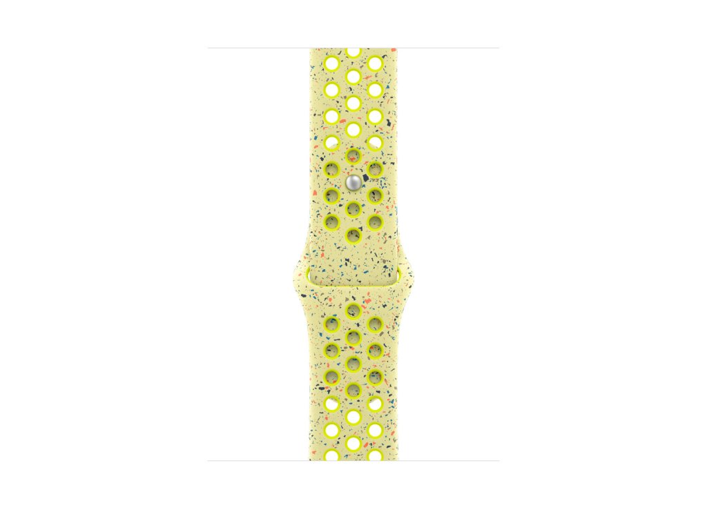 46mm Volt Splash sportovní řemínek Nike Tenhle sportovní řemínek Nike má vylisované otvory pro větší vzdušnost, je odolný, pevný a přitom překvapivě poddajný. Obsahuje barevné vločky, které tvoří náhodné vzory, takže každý řemínek je originál. Jeho hladký, hutný materiál se elegantně ovine kolem zápěstí a příjemně sedí. A zapíná se na hliníkový kolíček s matným povrchem, do kterého je pečlivě vygravírované logo Nike Run. *Materiál: Hliník, Fluoroelastomer Kompatibilita Modely Apple Watch *44 mm *45 mm *46 mm *49 mm M/L: Na zápěstí s obvodem 160–210 mm.Dodatočné parametre