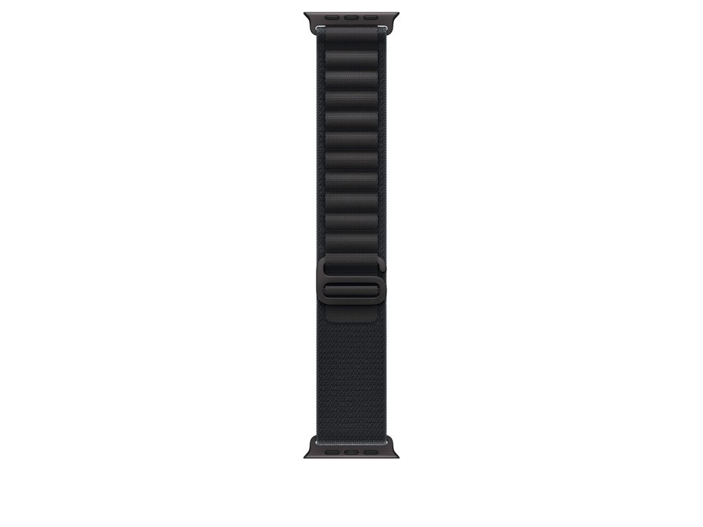 49mm černý Alpský tah – provedení z černého titanu Houževnatý Alpský tah je vyrobený ze dvou textilních vrstev tkaných jako jeden souvislý celek bez jakýchkoli stehů. Svrchní poutka jsou zpevněná vysokopevnostní přízí a titanová spona ve tvaru písmene G do nich snadno vklouzne a spolehlivě drží. *Materiál: 100% recyklovaný polyester, 100% recyklovaný elastan, 90% podíl recyklovaného titanu Kompatibilita Modely Apple Watch *44 mm *45 mm *46 mm *49 mm Velký: Řemínek na zápěstí s obvodem 165–210 mm.Dodatočné parametre