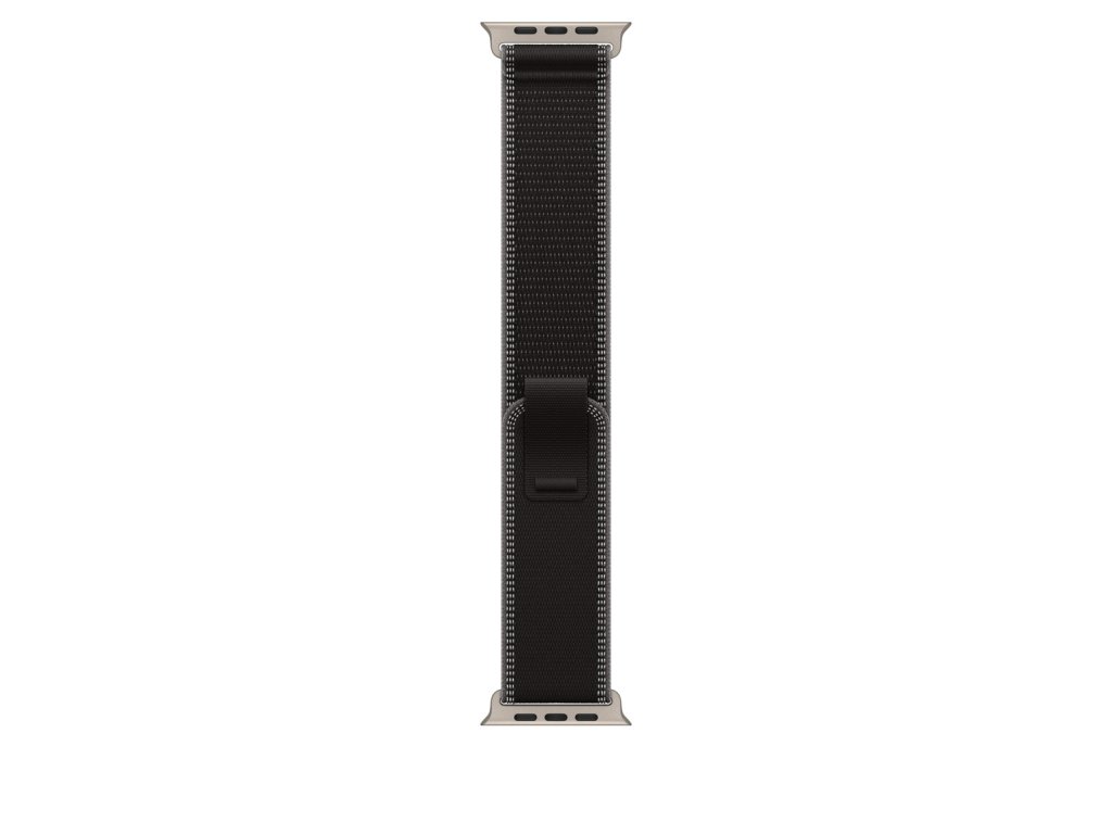 49mm černý/uhlový Trailový tah – provedení z přírodního titanu Ultratenký, lehký a strečový řemínek vyrobený z nylonové tkaniny, která je elastická a pohodlná na nošení. Má praktické zapínací poutko na rychlé úpravy dotažení v poklusu a nově i reflexní vlákna po okrajích. *Materiál: 90% podíl recyklovaného titanu, 100% recyklovaný polyester, 100% recyklovaný elastan, 60% recyklovaný nylon Kompatibilita Modely Apple Watch *44 mm *45 mm *46 mm *49 mm M/L: Řemínek na zápěstí s obvodem 145–220 mm.Dodatočné parametre