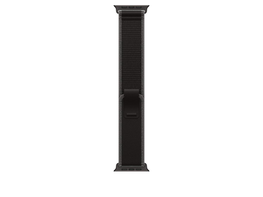 49mm černý/uhlový Trailový tah – provedení z černého titanu Ultratenký, lehký a strečový řemínek vyrobený z nylonové tkaniny, která je elastická a pohodlná na nošení. Má praktické zapínací poutko na rychlé úpravy dotažení v poklusu a nově i reflexní vlákna po okrajích. *Materiál: 90% podíl recyklovaného titanu, 100% recyklovaný polyester, 100% recyklovaný elastan, 60% recyklovaný nylon Kompatibilita Modely Apple Watch *44 mm *45 mm *46 mm *49 mm S/M: Na zápěstí s obvodem 130–180 mm.Dodatočné parametre