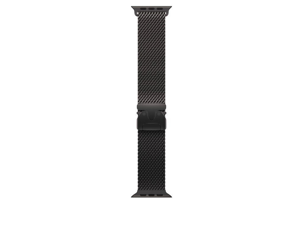 49mm milánský tah z černého titanu Titanový milánský tah je tvořený pletivem z leteckého titanu a bezpečnou zacvakávací přezkou. Inspiruje se nerezovým pletivem historicky používaným při potápění a je navržený pro aktivity v moři. Protože je vyrobený z lehkého titanu, obstojí v každé situaci. V krabici Titanový milánský tah k Apple Watch Materiál: 95% podíl recyklovaného titanu Kompatibilita Modely Apple Watch *44 mm *45 mm *46 mm *49 mm Velký: Řemínek na zápěstí s obvodem 180–210 mm.Dodatočné parametre
