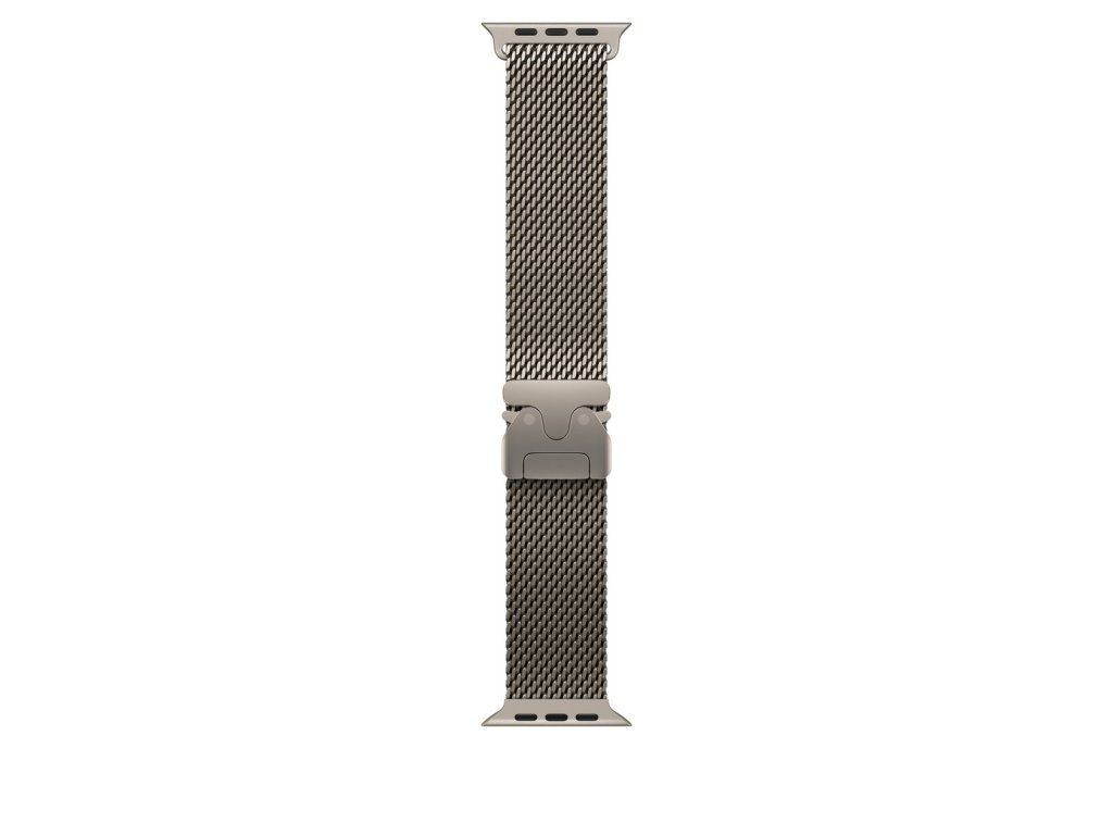 49mm milánský tah z přírodního titanu Titanový milánský tah je tvořený pletivem z leteckého titanu a bezpečnou zacvakávací přezkou. Inspiruje se nerezovým pletivem historicky používaným při potápění a je navržený pro aktivity v moři. Protože je vyrobený z lehkého titanu, obstojí v každé situaci. V krabici Titanový milánský tah k Apple Watch Materiál: 95% podíl recyklovaného titanu Kompatibilita Modely Apple Watch *44 mm *45 mm *46 mm *49 mm Střední: Řemínek na zápěstí s obvodem 155–185 mm.Dodatočné parametre