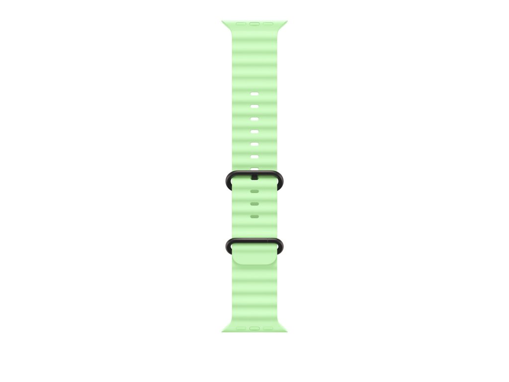 49mm neonově zelený Oceánský řemínek – provedení z černého titanu Oceánský řemínek je lisovaný z vysoce funkčního elastomeru a má trubicovitou strukturu, takže se dá napnout, aby perfektně seděl i přes neopren. Díky titanové přezce a nastavitelnému poutku, které jsou přirozeně odolné proti korozi, se při vysokorychlostních vodních sportech ani nehne. Pokud řemínek nenavlékneš přes neopren, můžeš si dokoupit prodloužení. V krabici *Oceánský řemínek k Apple Watch *Jedno nastavitelné poutko Materiál: Titan, Fluoroelastomer Kompatibilita Modely Apple Watch *44 mm *45 mm *46 mm *49 mmDodatočné parametre