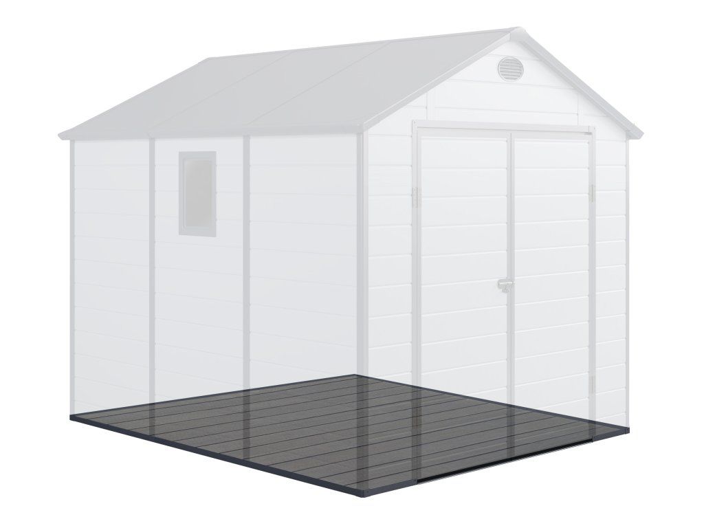 WPC podlaha pre záhradný domček G21 je praktickým riešením aj do najnáročnejších podmienok. Je vysoko odolná, znáša všetky teplotné výkyvy a drží si svoje vlastnosti vrátane farby.