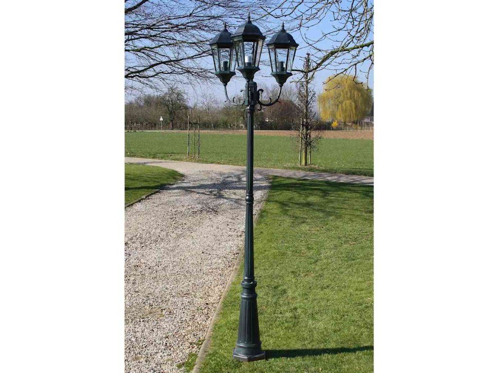 Záhradné trojramenné stĺpové svietidlo Brighton tmavo zelené/čierne, 230 cm