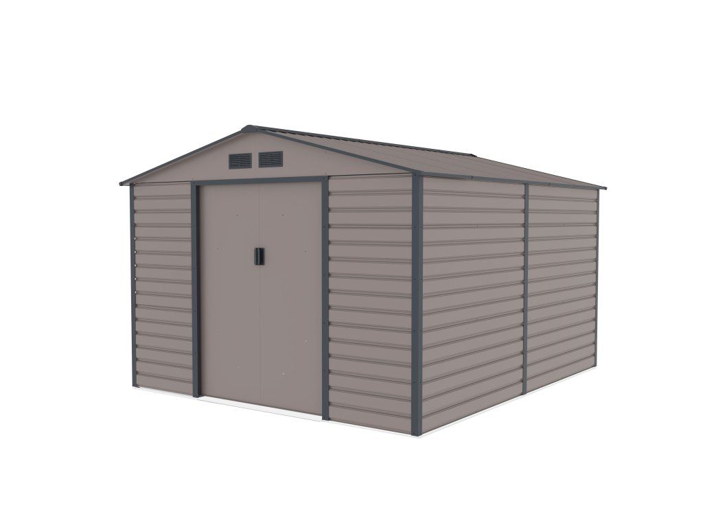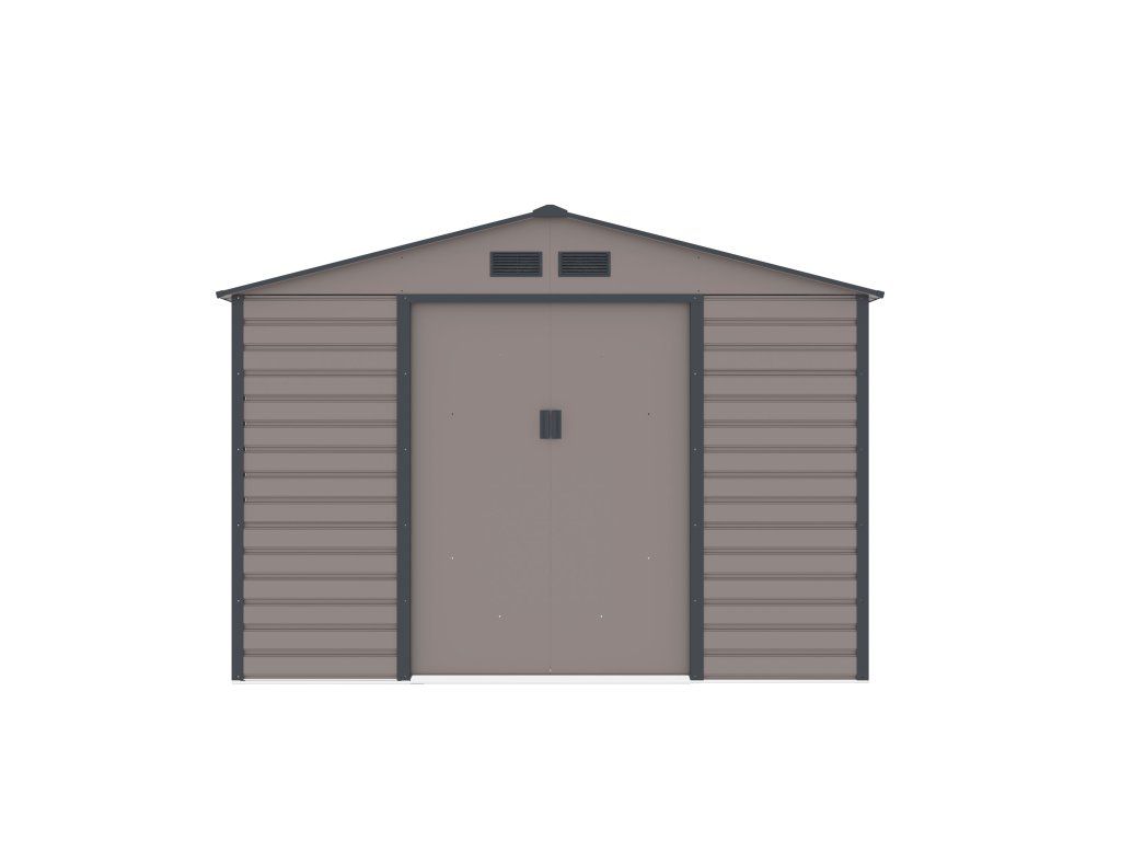 Záhradné domčeky na náradie v modernom dizajne sa hodia do každej záhrady. Vstupné dvere sú dostatočne široké, preto do domčeka pohodlne uložíte svoje náradie, záhradný fúrik i vonkajší nábytok.