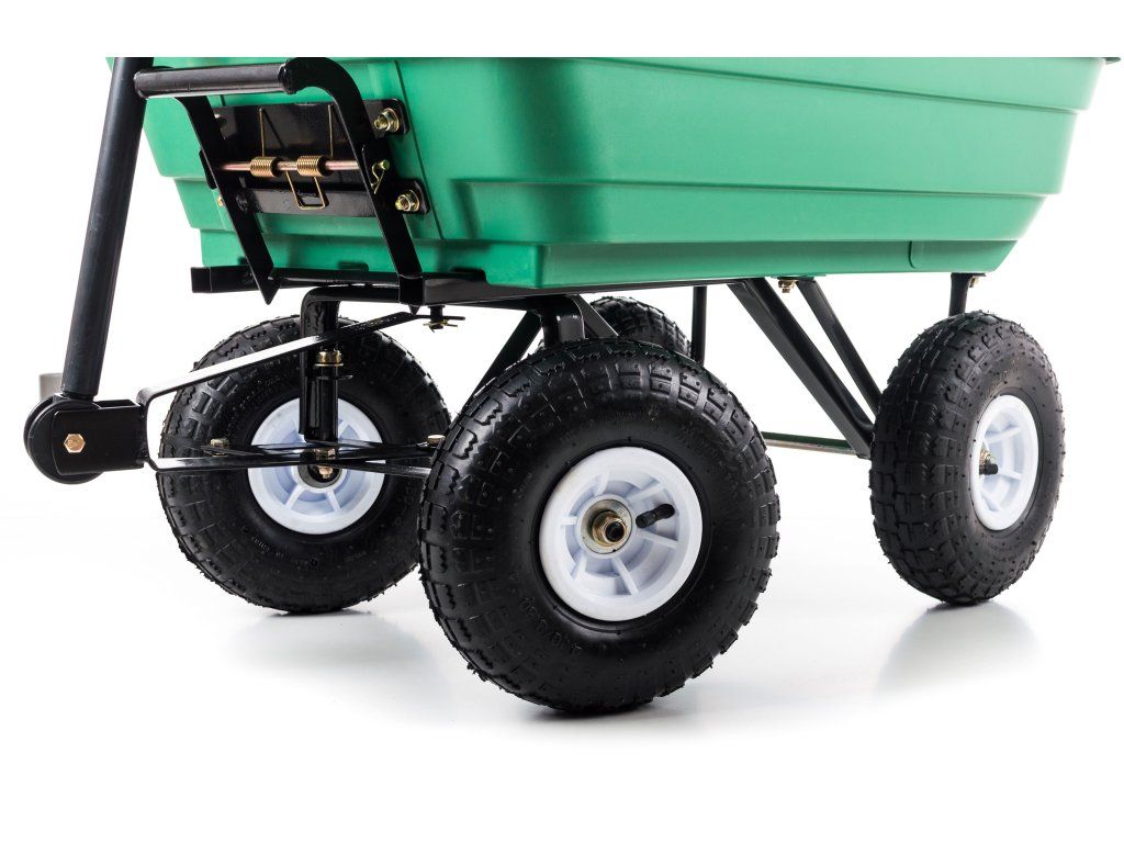 Záhradný vozík G21 GA 90 má praktickú sklápaciu nepriepustnú korbu s objemom 90 l, nosnosť 130 kg a 4 nafukovacie kolesá na dvoch nápravách, z ktorých jedna je riadiaci. Vozík sa vďaka tomu ľahko ovláda a veľmi snadno a pohodlne sa s ním manipuluje.