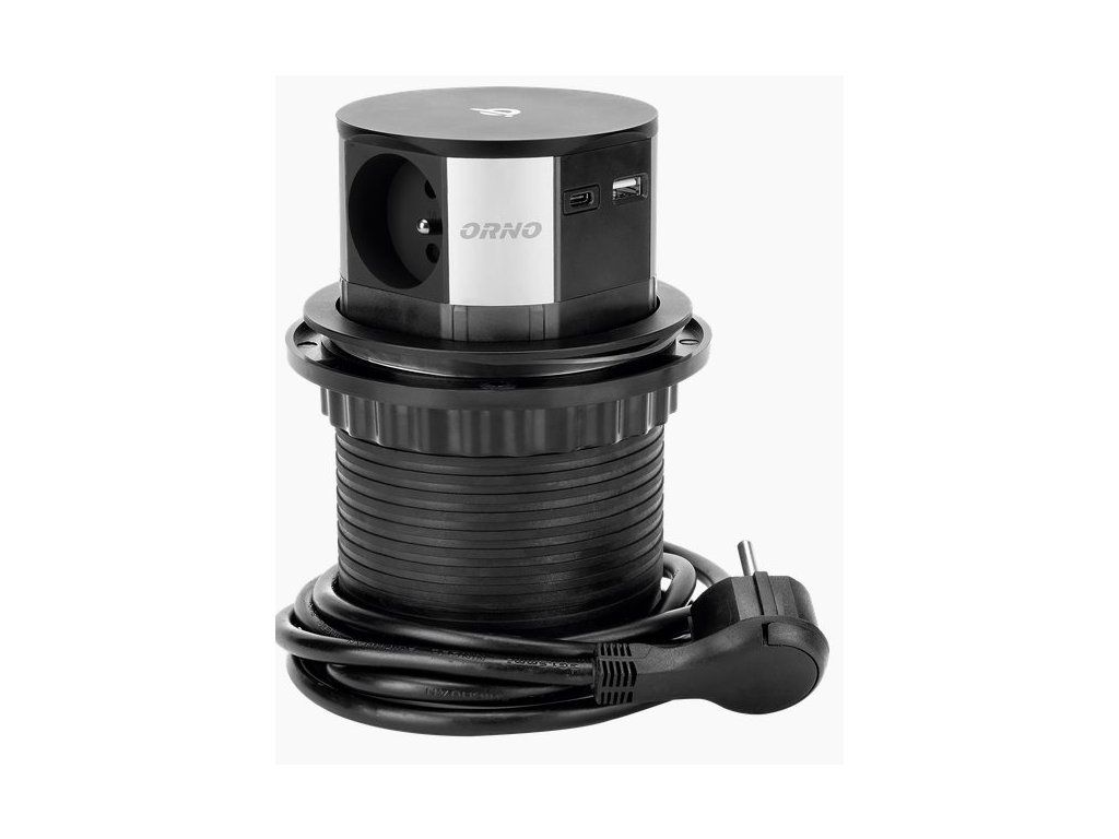 Súprava troch zásuviek s uzemnením a clonkami, USB nabíjačkou so systémom QC 3.0, umiestnených vo výsuvnom puzdre. Súprava má navyše indukčnú nabíjačku, ktorá umožňuje pohodlné bezdrôtové nabíjanie externých zariadení. Tento blok zásuviek je určený na inštaláciu do konferenčných stolov, kancelárskych a kuchynských dosiek stola. Vybavené 1,5 m káblom. Presný mechanizmus automaticky vysunie panel pomocou zásuviek po stlačení. Inštalácia vyžaduje iba otvor s priemerom 10 cm. Tento výrobok je vyrobený z plastu a nerezovej ocele.