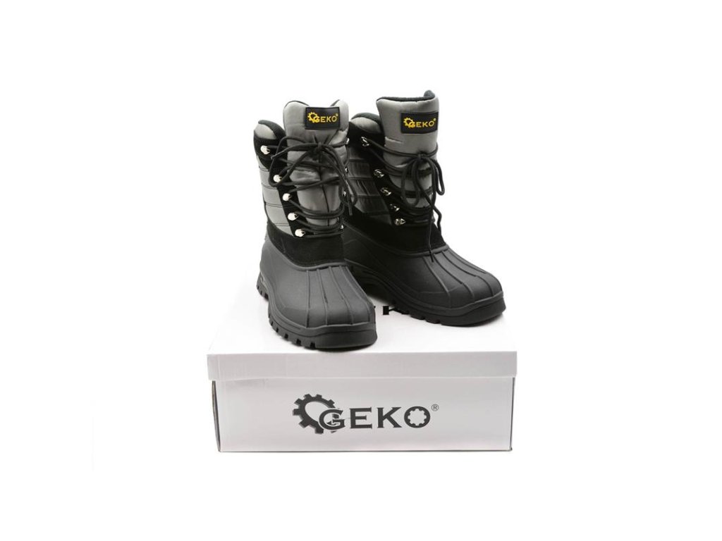 Praktické nepromokavé sněhule do půli lýtek značky GEKO. Spodní část povrchu a podrážka je vyrobena z vysoce kvalitního termokaučuku, který se vyznačuje velmi dobrou přilnavostí a díky své vysoké pružnosti nebrání pohybu a nevytváří odpor při ohýbání. Povrch je vyroben z voděodolné polyesterové tkaniny, nylonu, polyuretanu a semiše. Silná zateplená podšívka z kožešinového úpletu poskytuje vynikající ochranu před velmi nízkými teplotami. Systém vázání na háčky a smyčky zajišťuje dokonalé přilnutí boty k lýtku.Hlavní výhody: