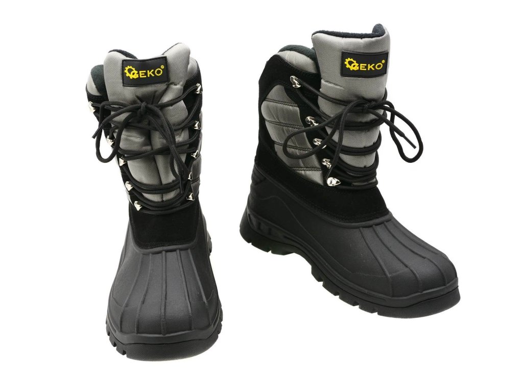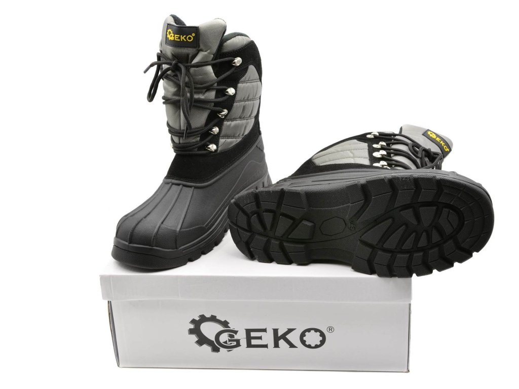 Praktické nepromokavé sněhule do půli lýtek značky GEKO. Spodní část povrchu a podrážka je vyrobena z vysoce kvalitního termokaučuku, který se vyznačuje velmi dobrou přilnavostí a díky své vysoké pružnosti nebrání pohybu a nevytváří odpor při ohýbání. Povrch je vyroben z voděodolné polyesterové tkaniny, nylonu, polyuretanu a semiše. Silná zateplená podšívka z kožešinového úpletu poskytuje vynikající ochranu před velmi nízkými teplotami. Systém vázání na háčky a smyčky zajišťuje dokonalé přilnutí boty k lýtku.Hlavní výhody: