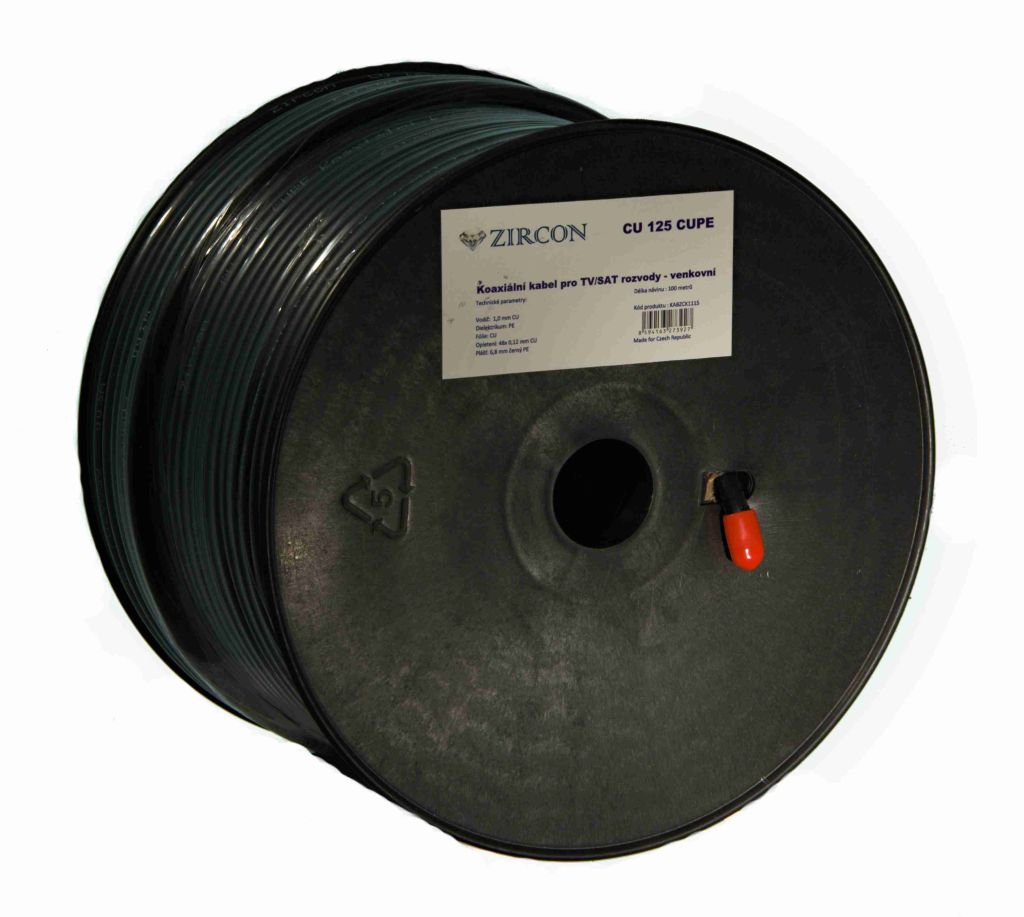 Zircon koaxiální kabel 125 CU CUPE černý 100m